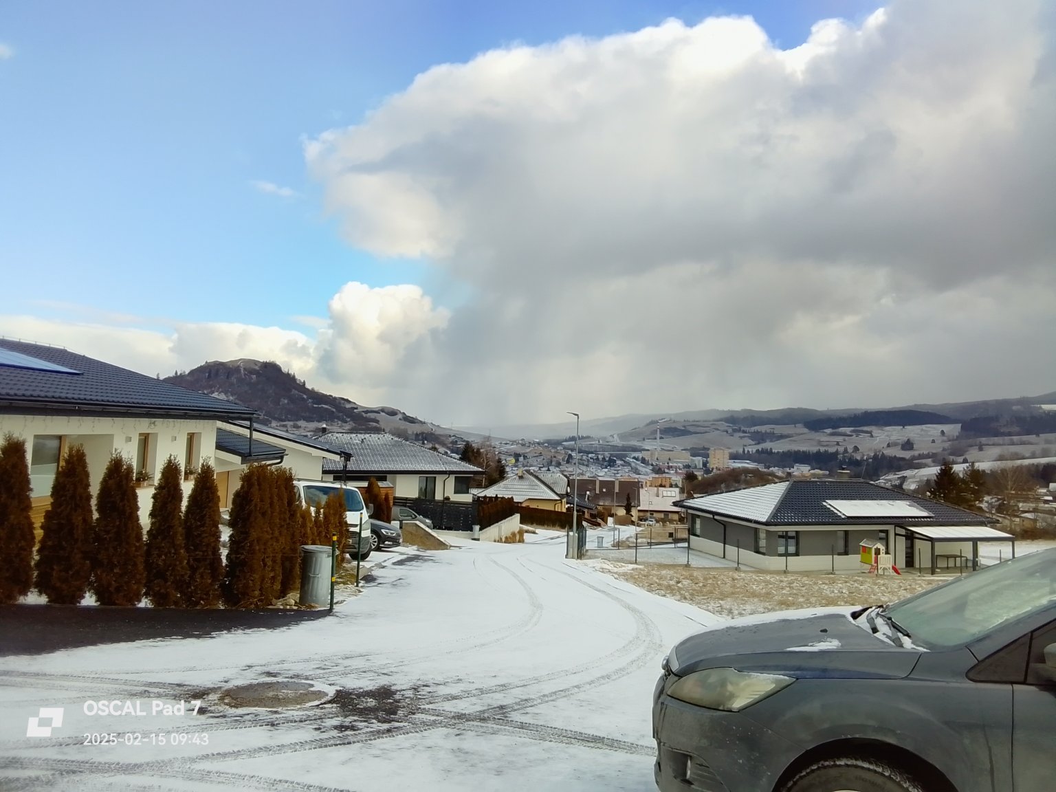 Skoro zataženo, nesouviský poprašek sněhu, klidno nebo jen velmi slabý JZ. vítr, tlak 1025 hPa.