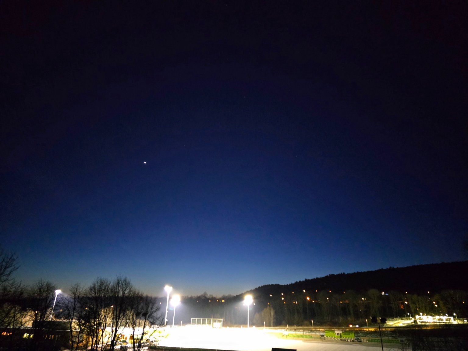 -8,1°C, Jasno, Sníh: nesouvislý. Dneska už je nepatrně tepleji.