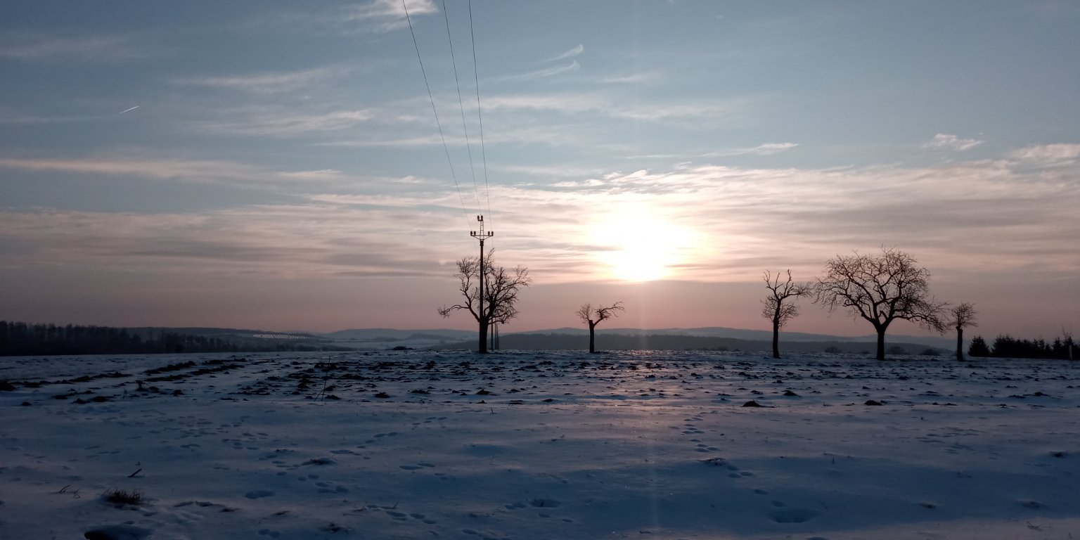 Slunečno a opět silně mrazivo! Klidno, hezky…. Sníh nesouvislý-3cm