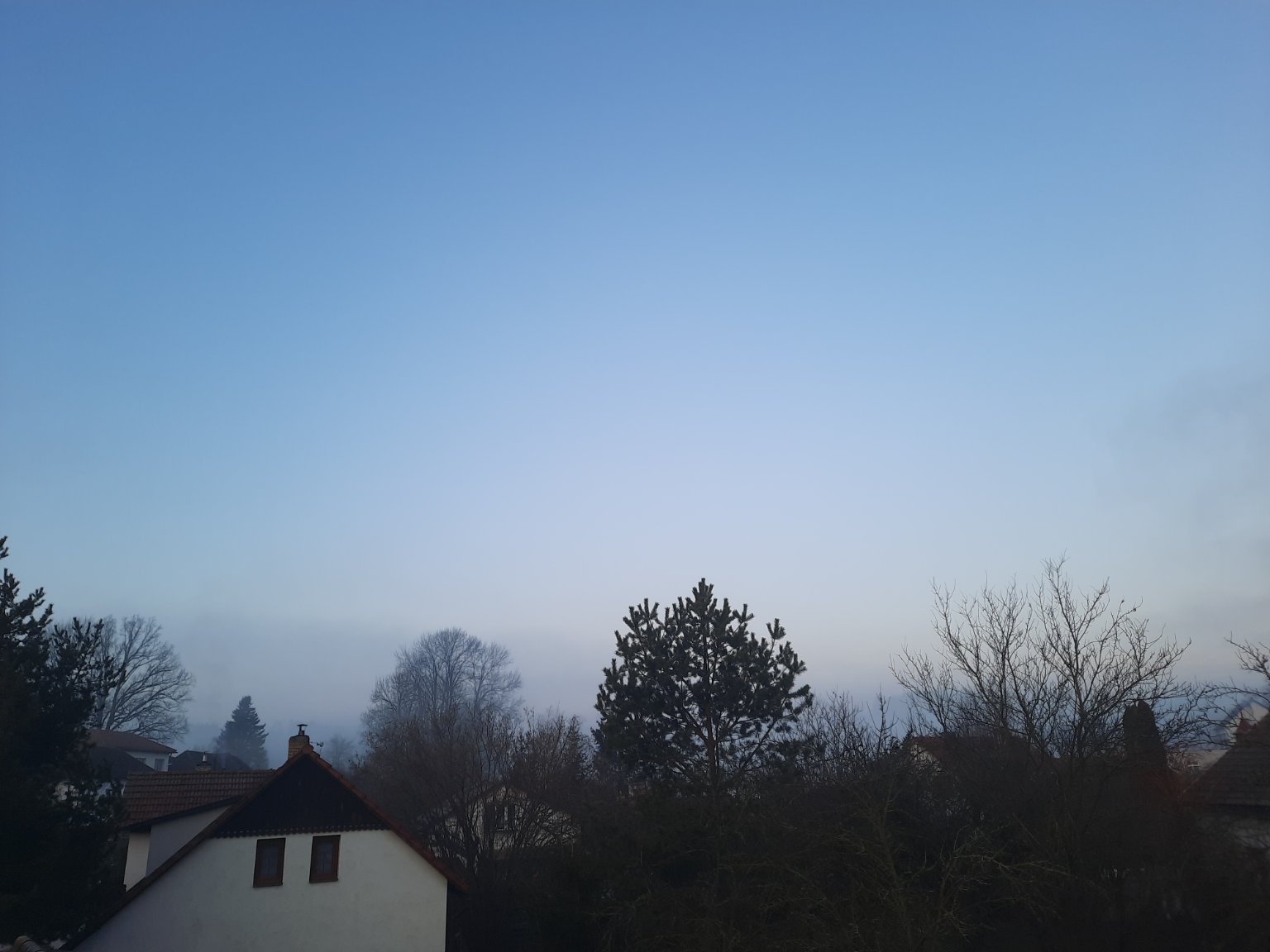 1,4°C, Slabý dešť, Sníh: 0 cm. Je hnusně, ale celkem přijemně.