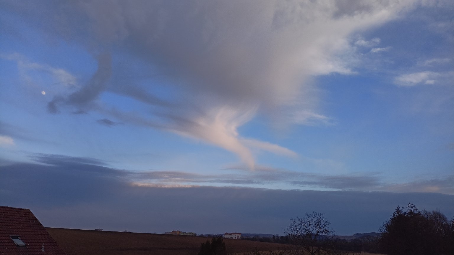 Krásni nasvícená oblačnost zapadajícím sluncem.