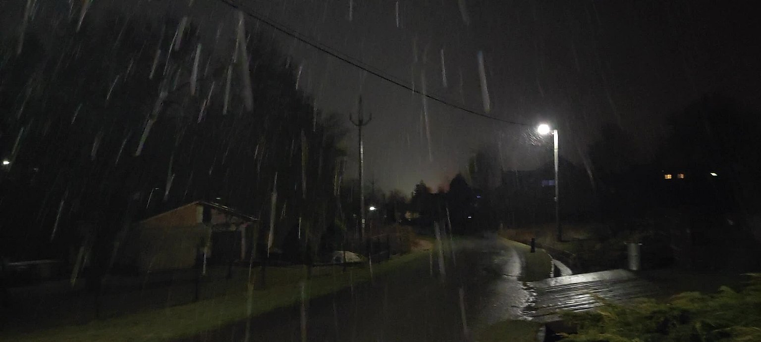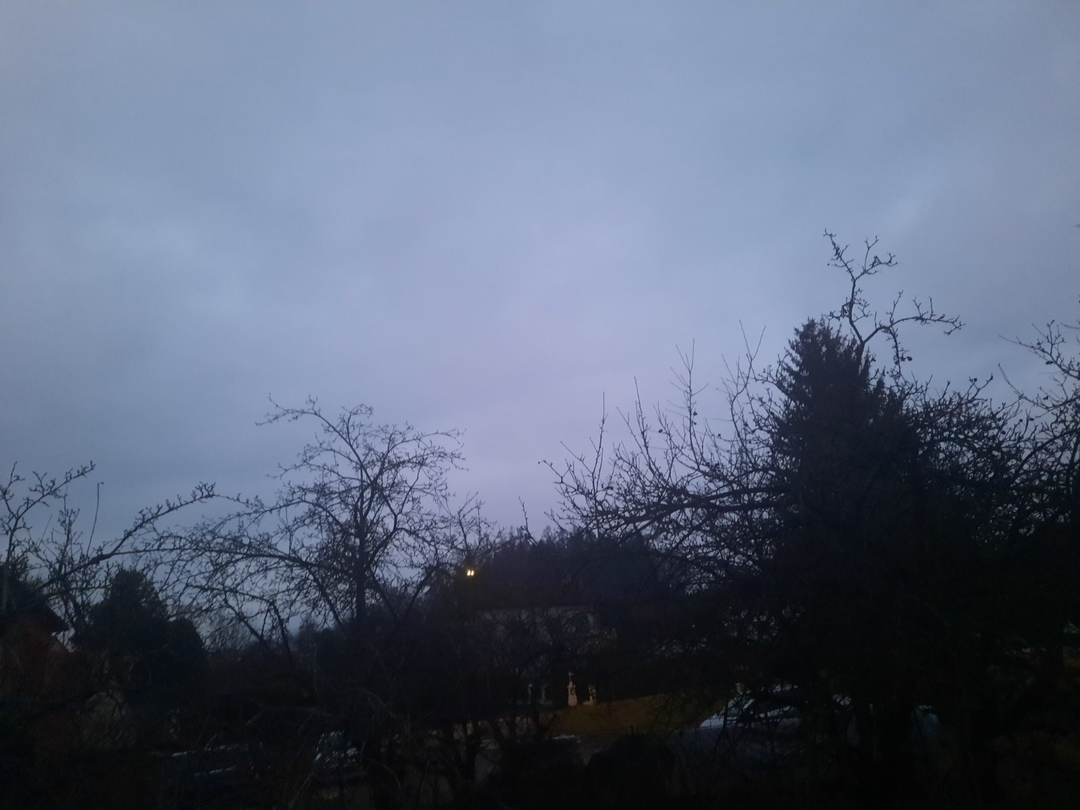 Celý den trvalý mírný déšť, po 17.hod přešel do sněžení (a krásně velké vločky). Dnešní srážky zatím 16,5 mm.