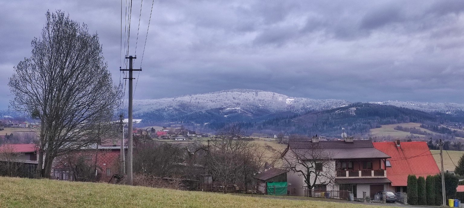 3,1°C, Zataženo, Sníh: 0 cm. Pěkně zasněžené vrcholky Beskyd.