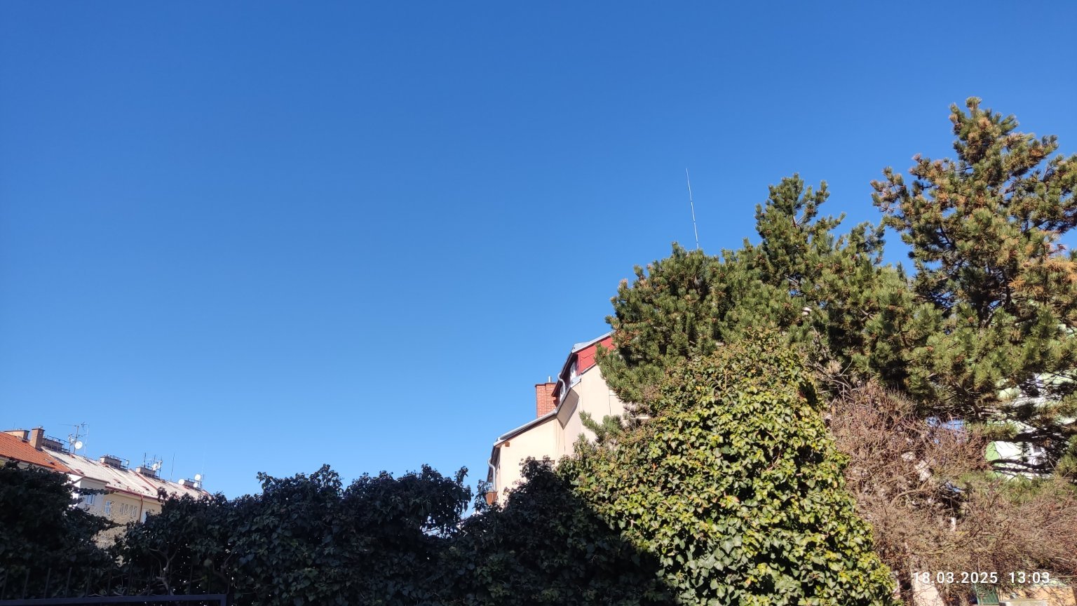 -°C, Skoro jasno, Sníh: 0 cm. Je nadherně, dá se být jen v mikině.