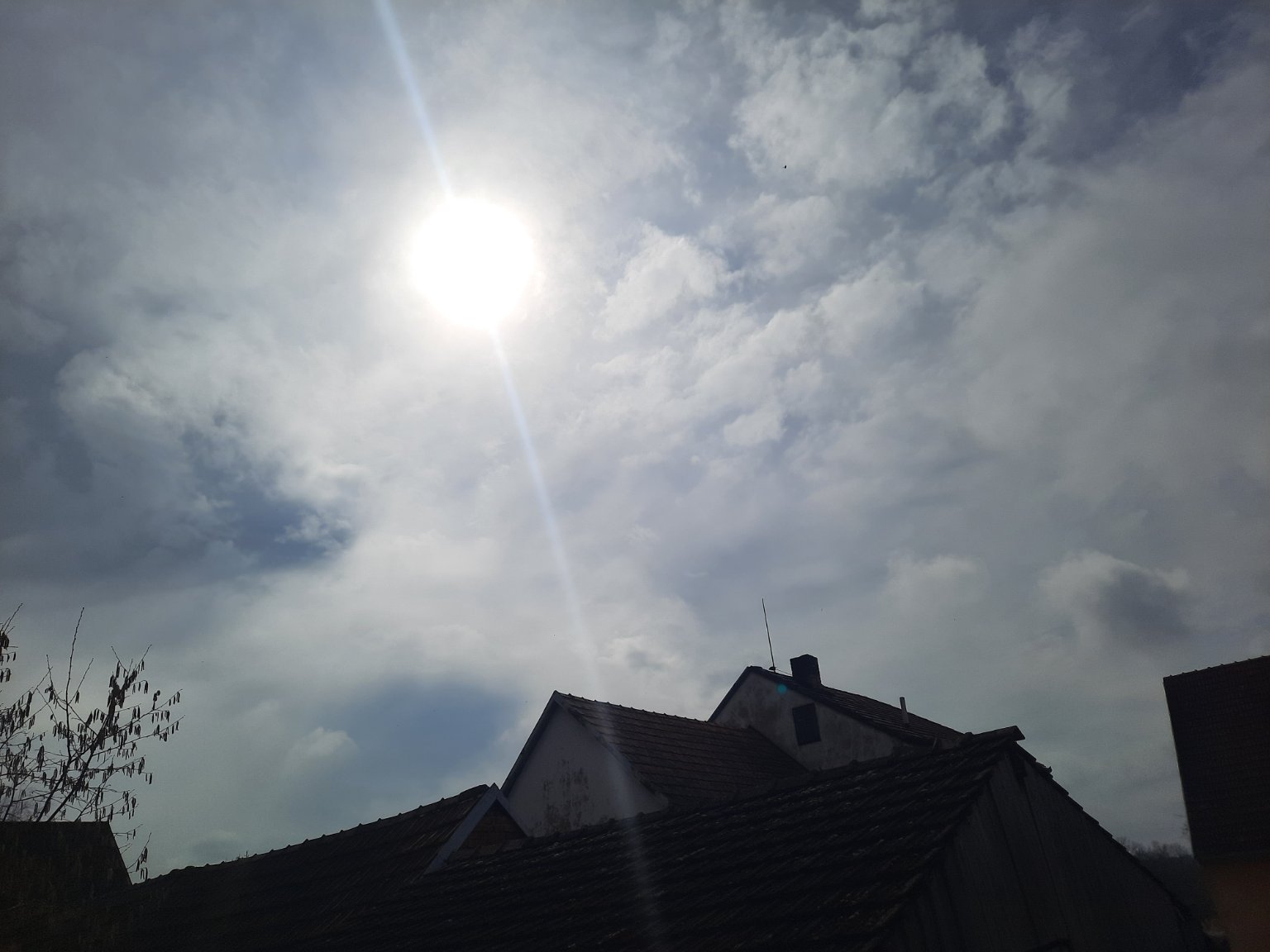 Většinou zataženo, zatím beze srážek. Vítr okolo 1 m/s JV