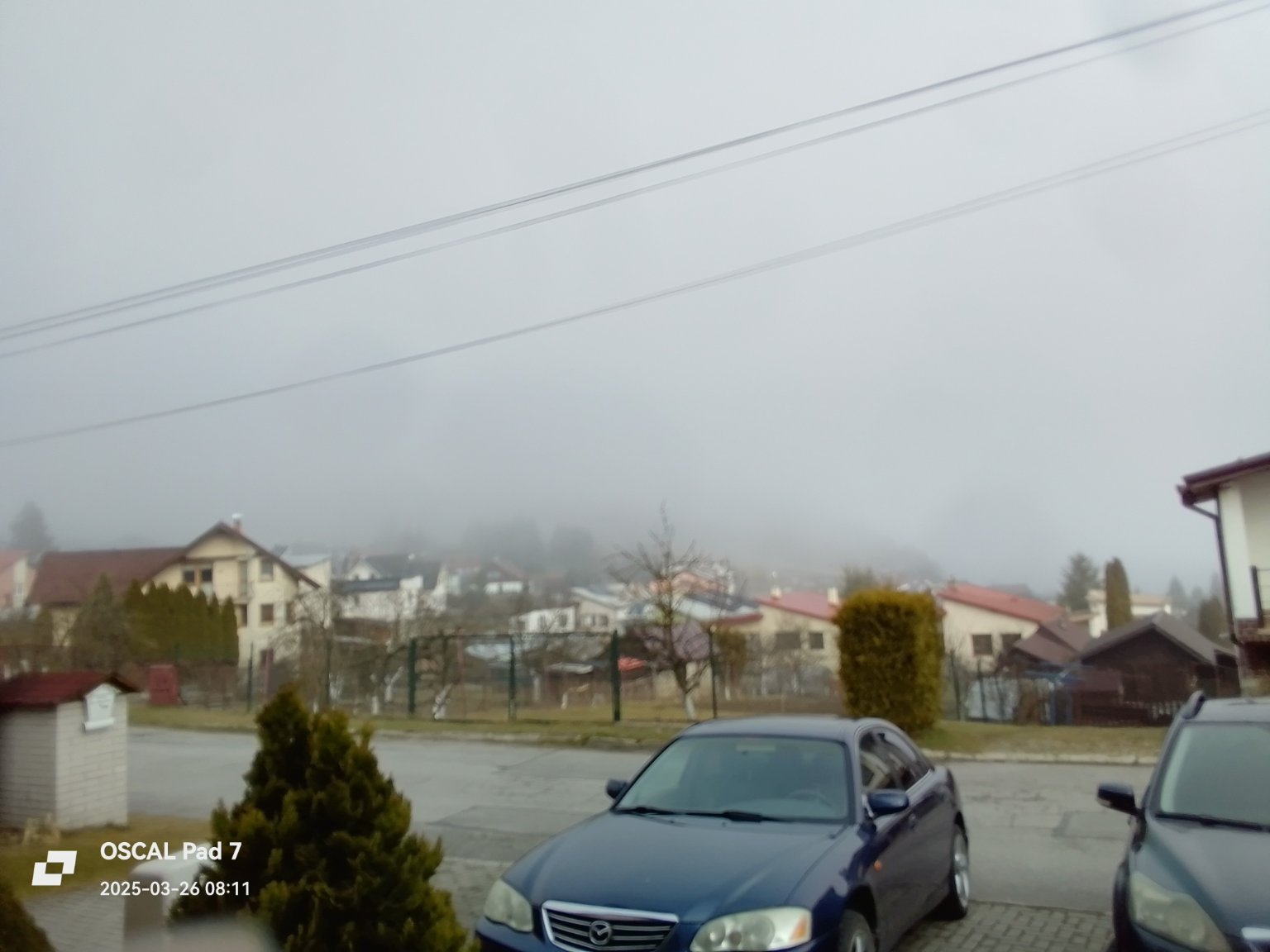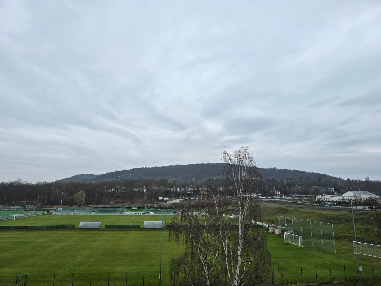 Zataženo, velmi slabě prší. Zatím bez úhrnu. Většinou bezvětří. Min T dnes 3,7°C