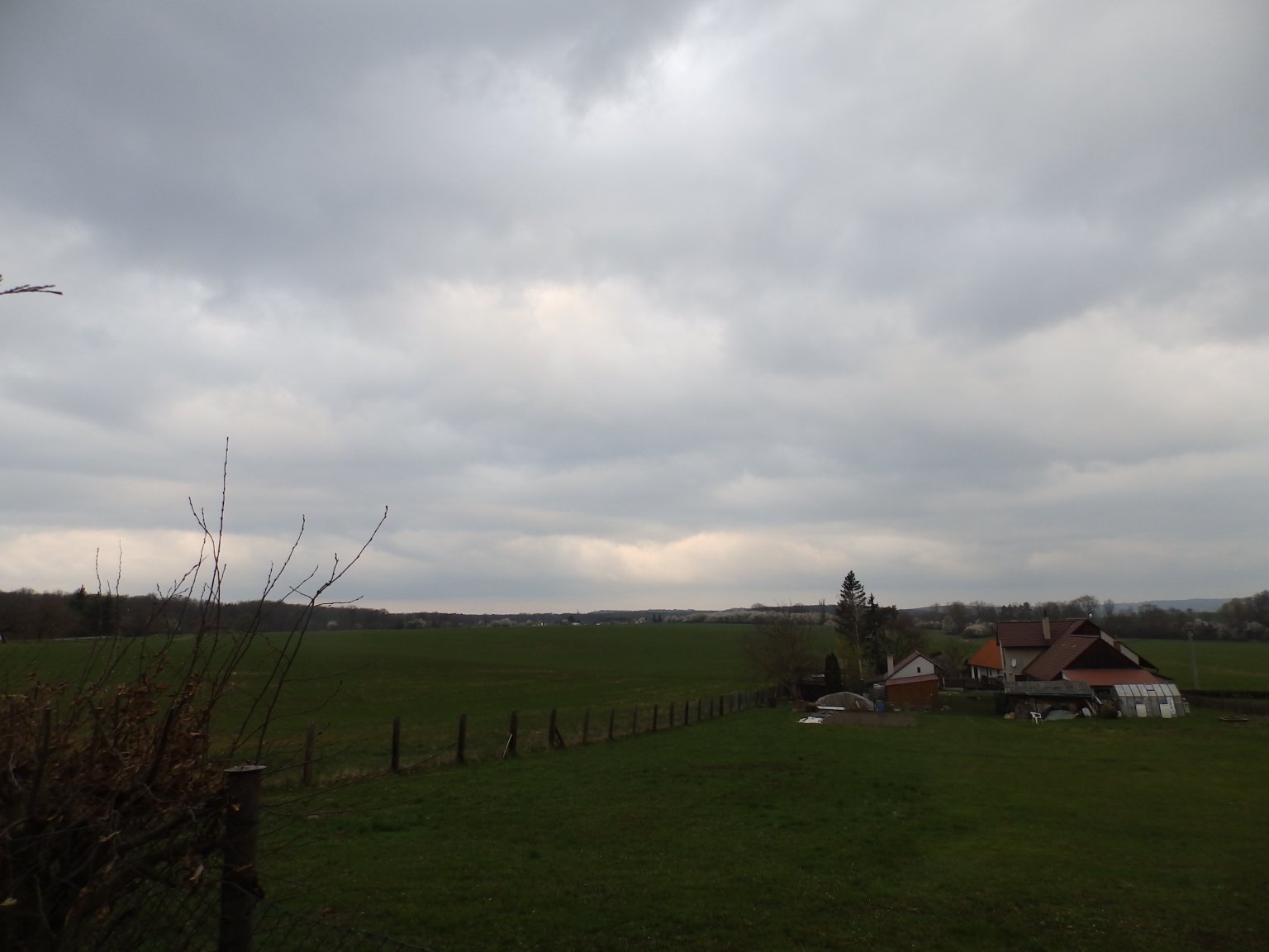0,4°C, Silné až mírné sněženi, Sníh: poprašek. Celkem chumelí, dokonce se to i drží, ale každou chvíli to ustane.