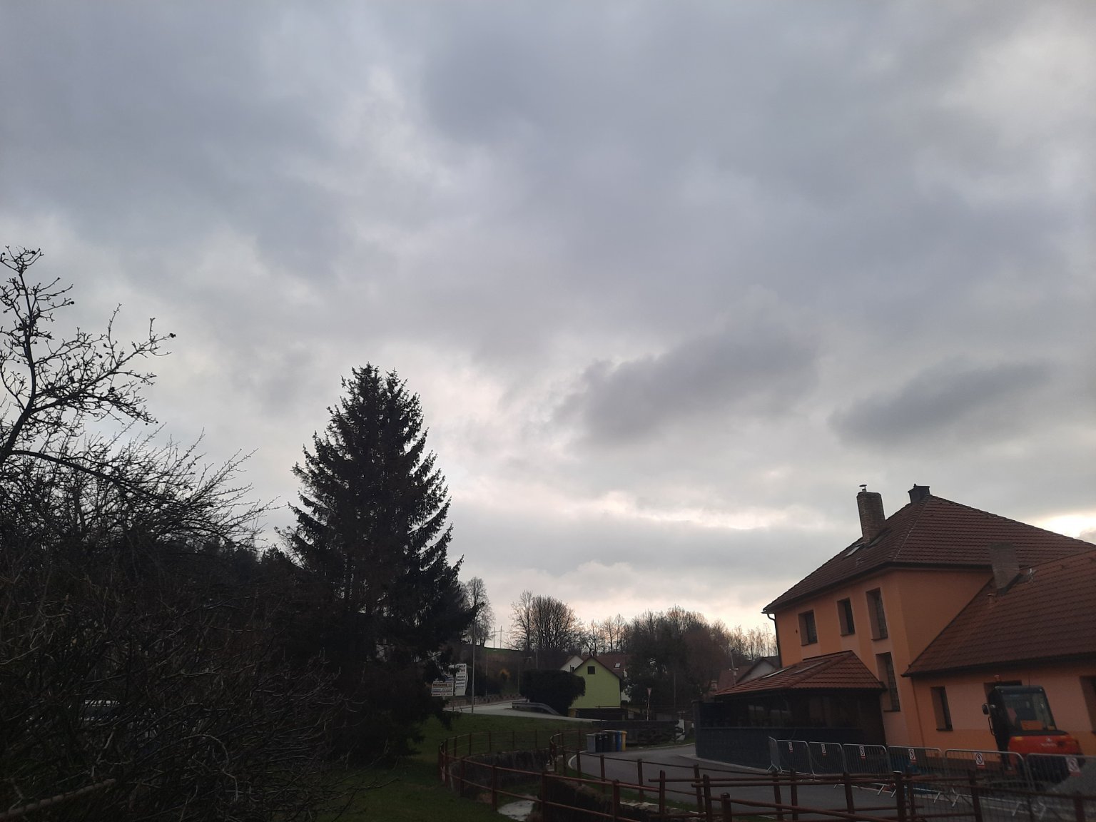 Zataženo, mírný SZ vítr, tlak 1023 hPa.