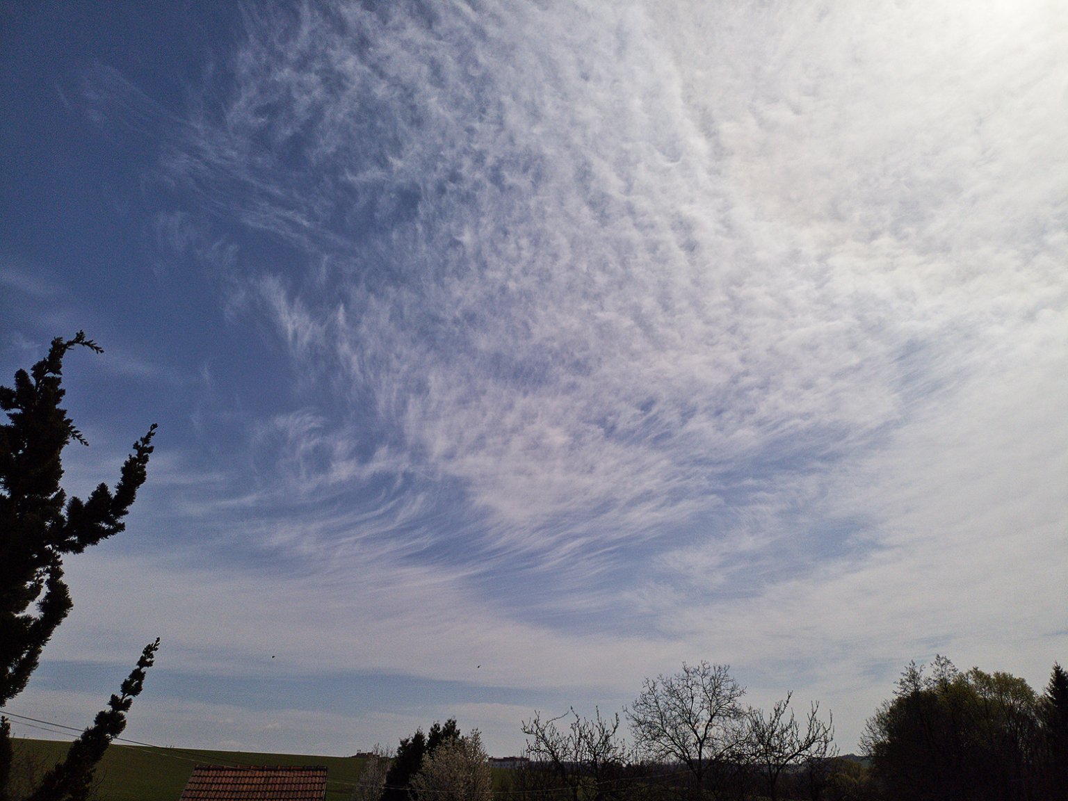 Skoro jasno až polojasno, jen Ac len a Ci. Vítr okolo 3 m/s VSV