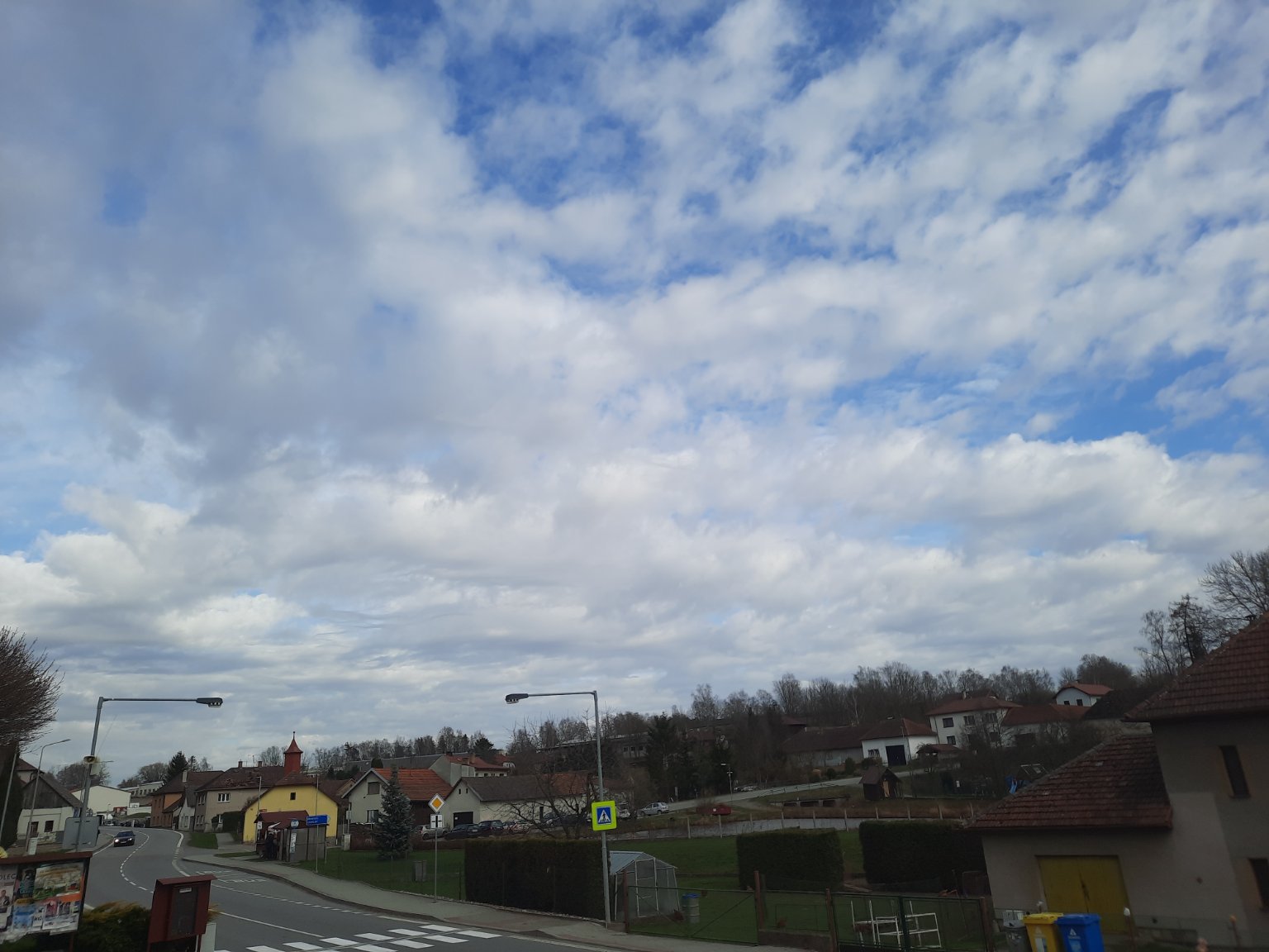 Oblačno až polojasno. Vítr okolo 3 m/s S