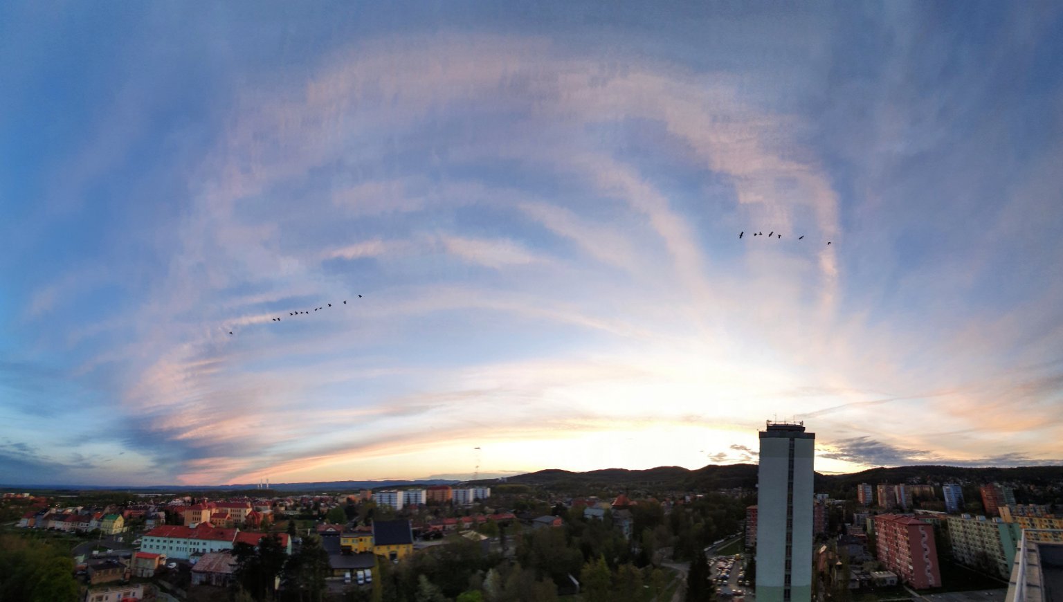Polojasno, částečně zataženo oblačností z velmi vzdálené bouřky, červánky díky vysoké oblačnosti. Bezvětří