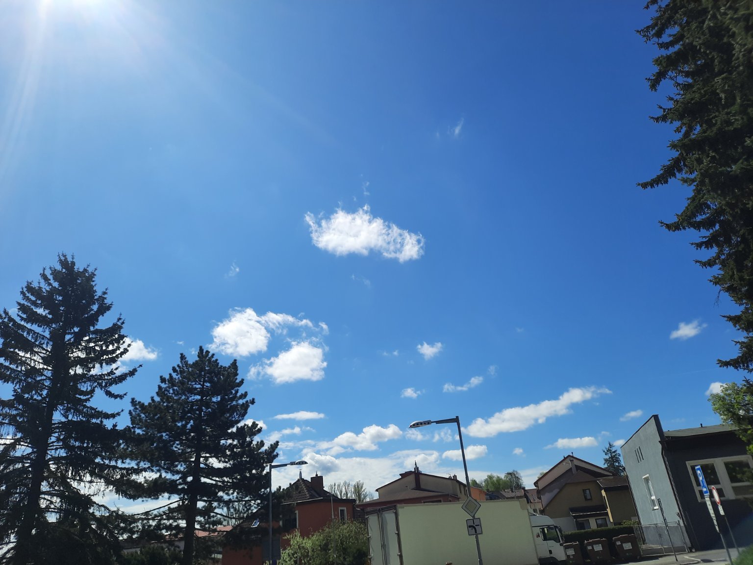 Malá kupovitá oblačnost. Mírný Z. vítr, tlak 1018 hPa, vlhkost 58%.