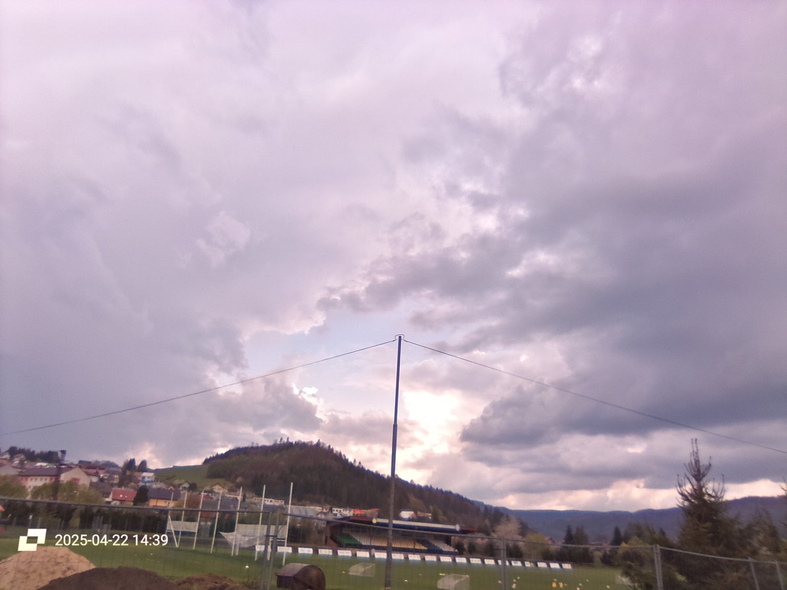 Déšť zatím 1,1mm,tlak 1017hpa, vítr V 3km, vlhkost 81%