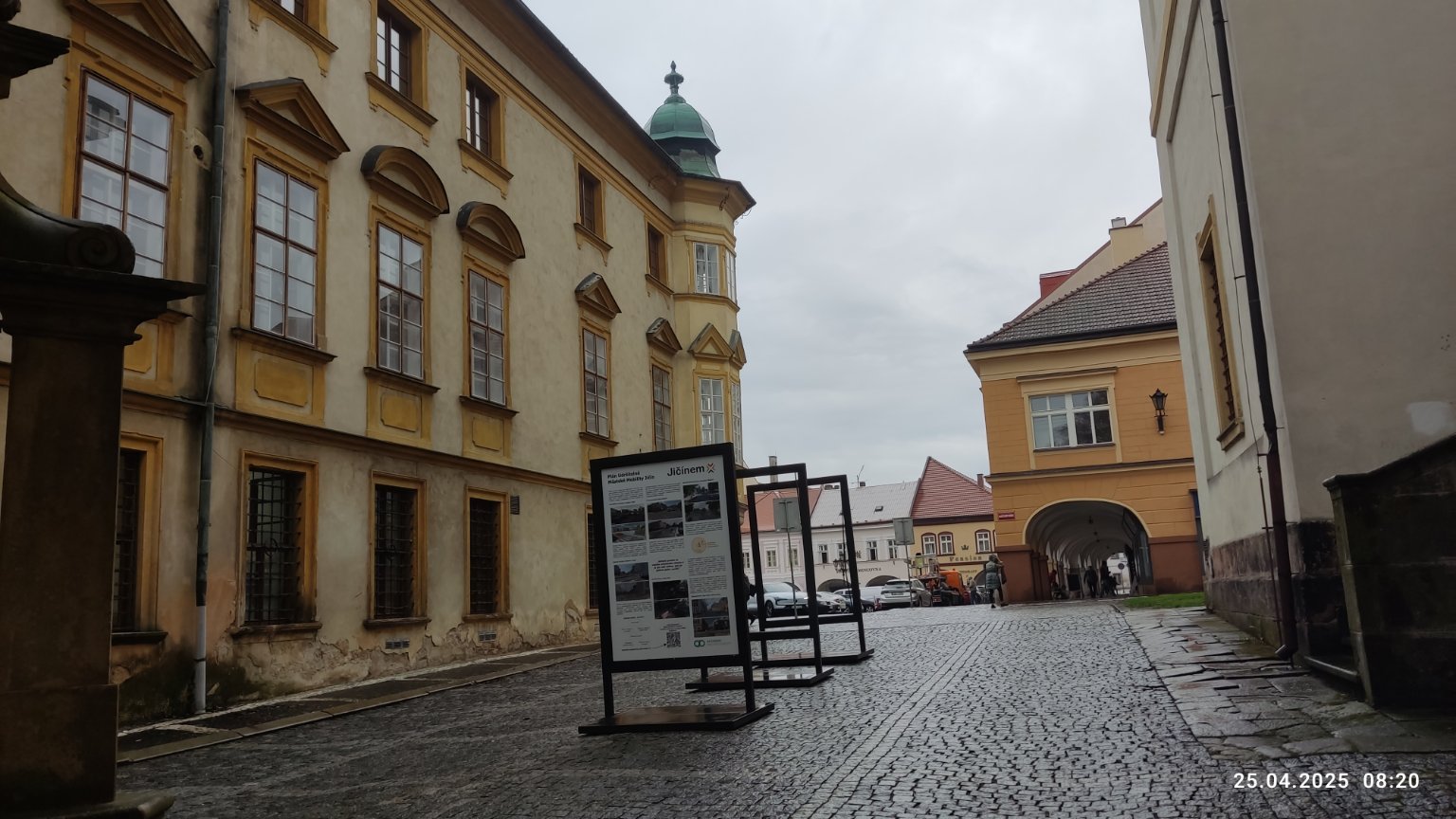 Zataženo, klidno, slabý déšť, tlak 1013 hPa.