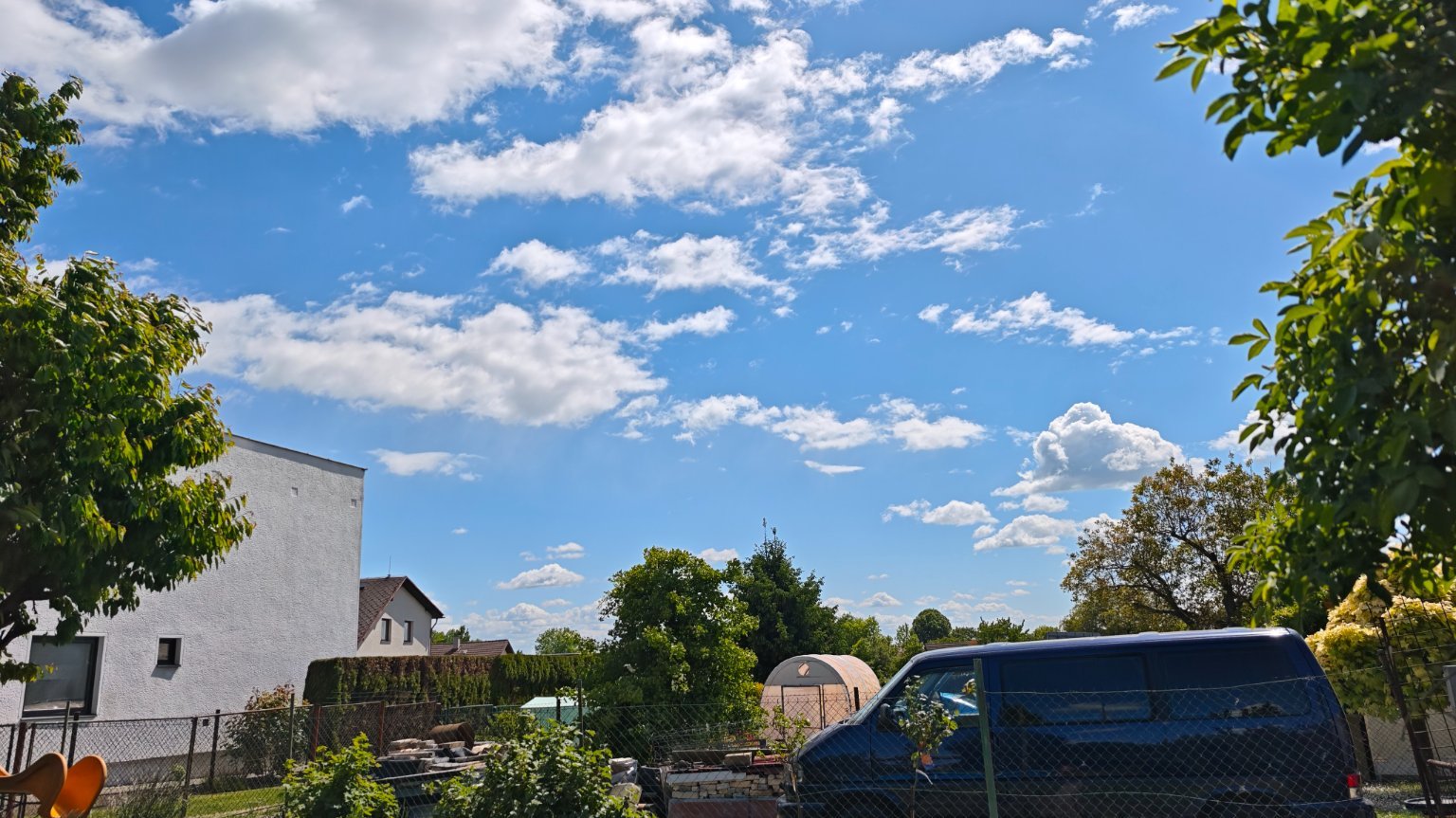 vítr S, 4 km/h, vlhkost 44 %, tlak 1012 hPa, přeháňka 0.2 mm