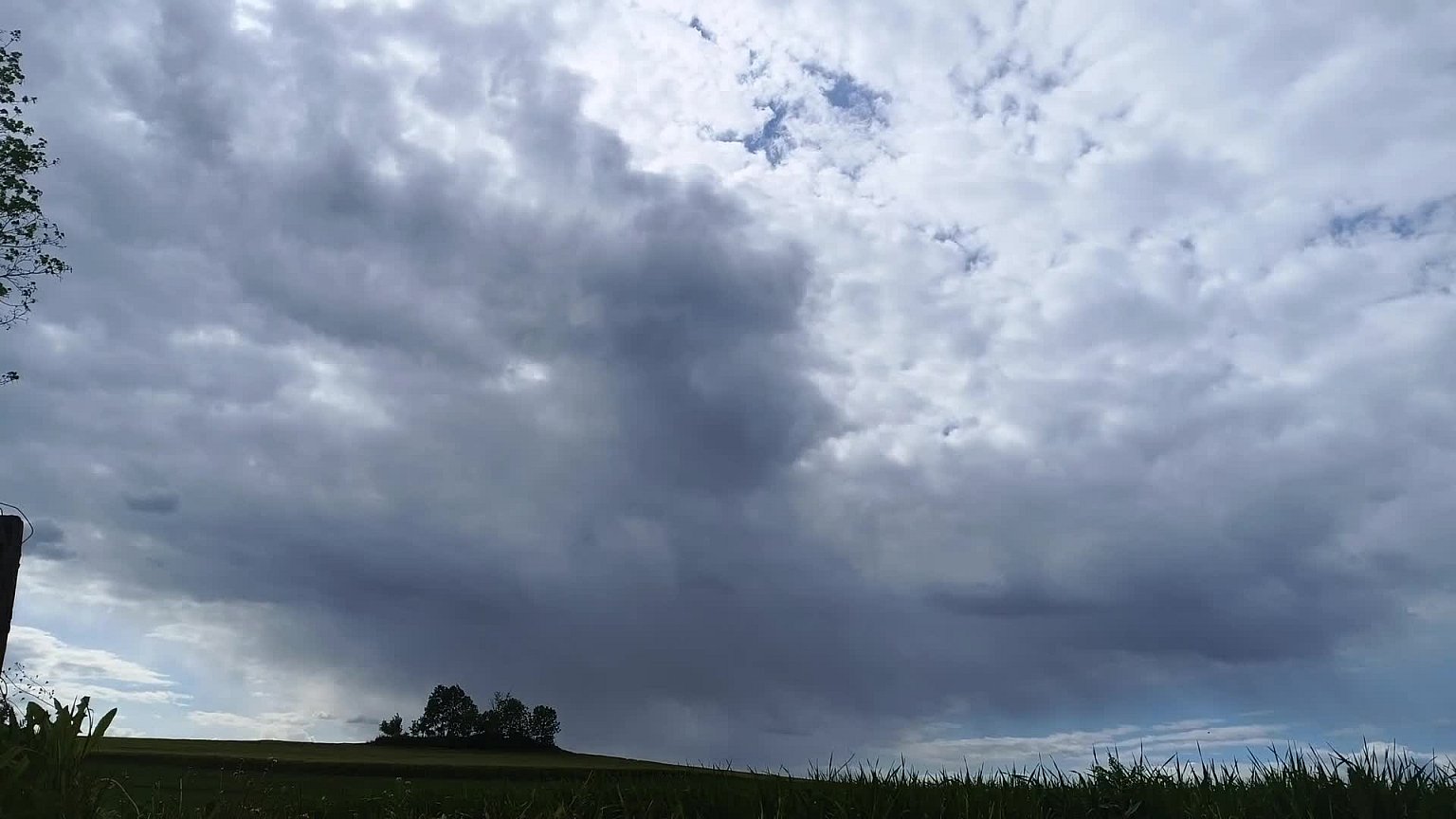 Mírný SZ vítr, rychle se zatáhlo a teplota klesla o 4°C, spadlo pár kapek