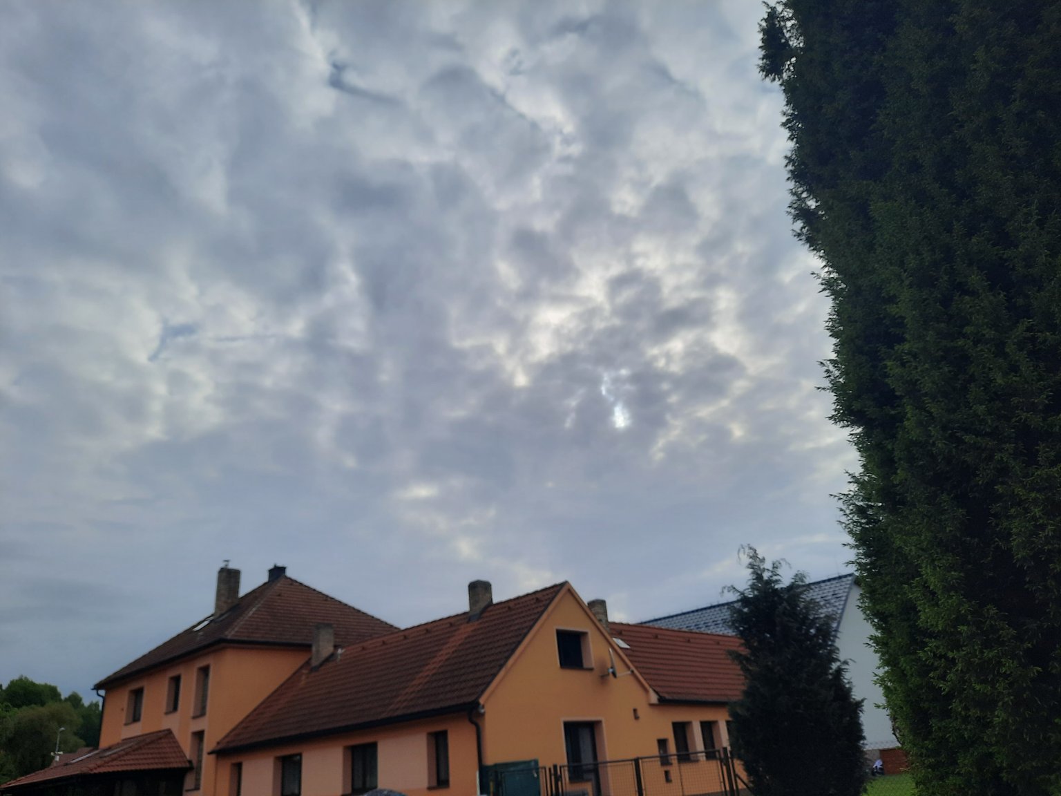Oblačno, mírný SZ vítr, tlak 1014 hPa.