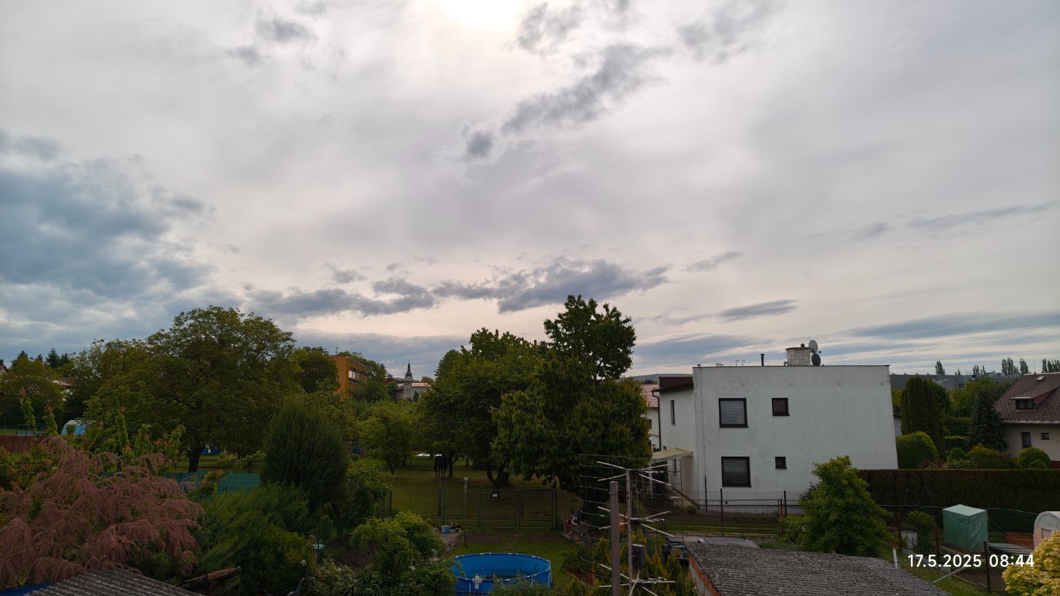 Skoro zataženo. Mírný Z. vítr, tlak 1013 hPa, vlhkost 68%.