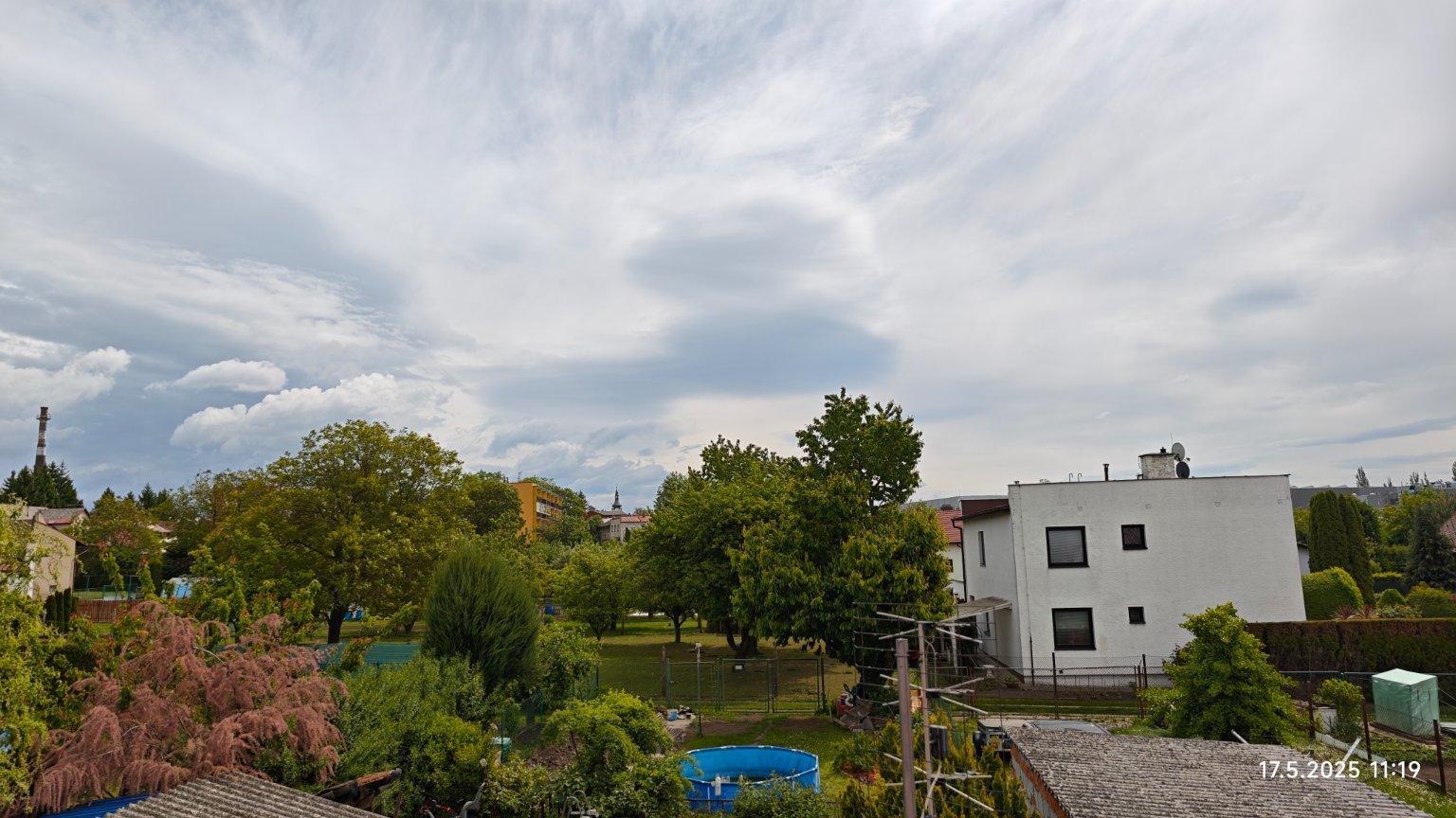 Skoro zataženo, čerstvý SZ. vítr, tlak 1011 hPa, vlhkost 57%.
