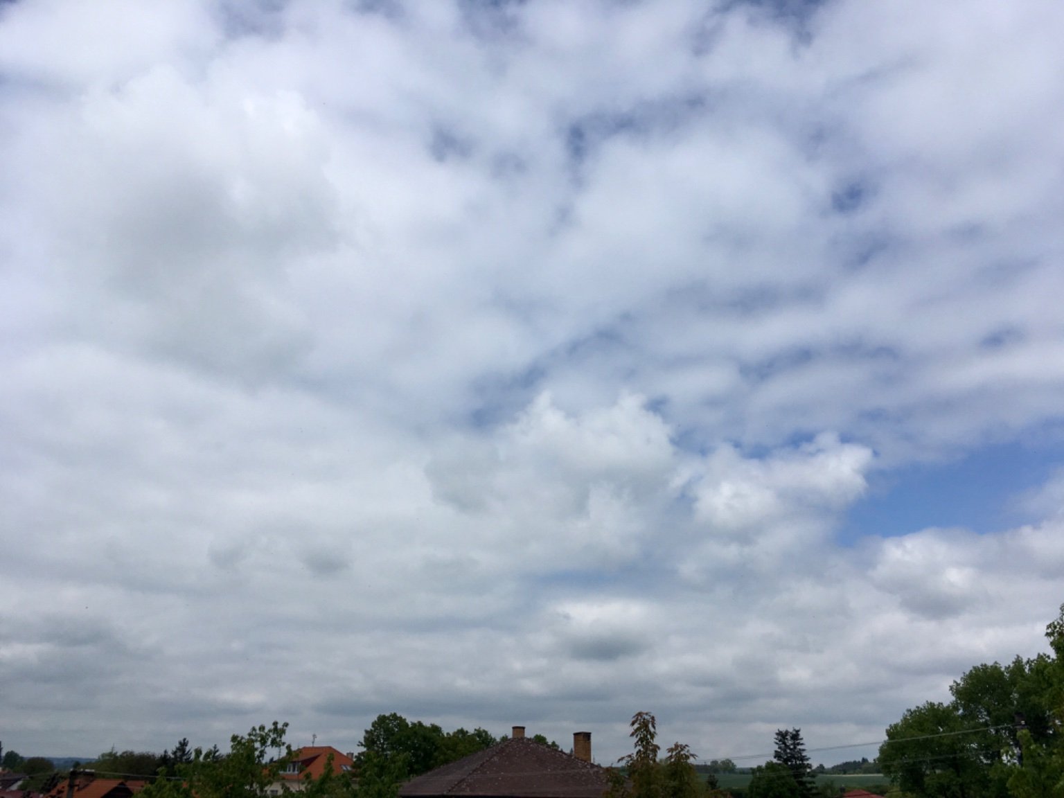 Na poměry letošního května je vlastně teplo, ale jinak nic moc. Vane slabý východní vítr, tlak: 1017hPa.