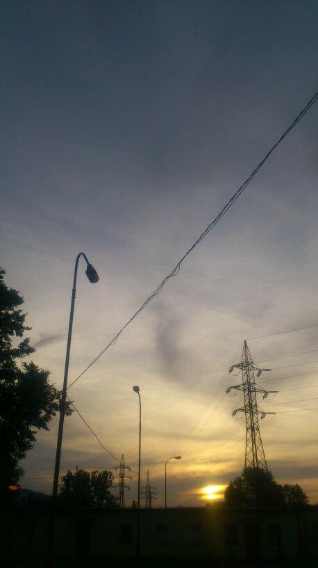 Skoro zataženo,mírný vítr,tlak 1013hPa,vlhkost 41%,Slunce pomalu zapadá do vysoké oblačnosti.