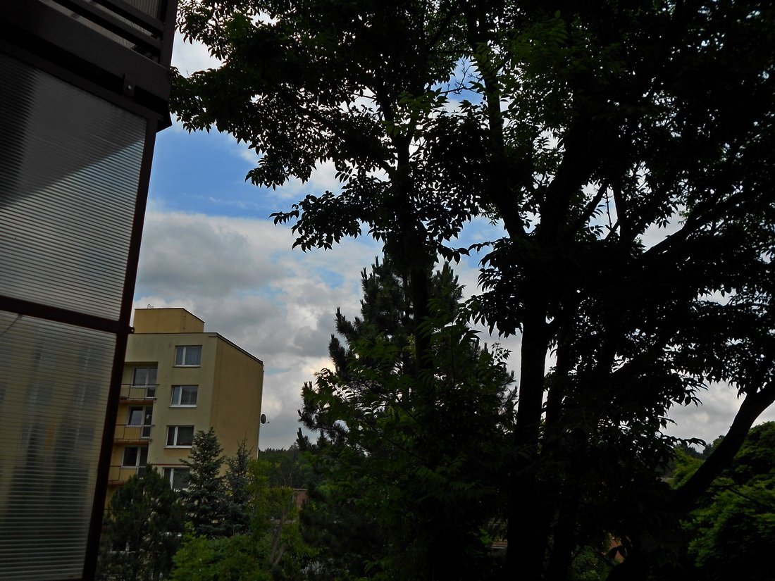 Polojasno, po přeháňce se nad městem vytvořil mlžný opar. Bezvětří, tlak 1011,6 hPa a vlhkost 45 %.