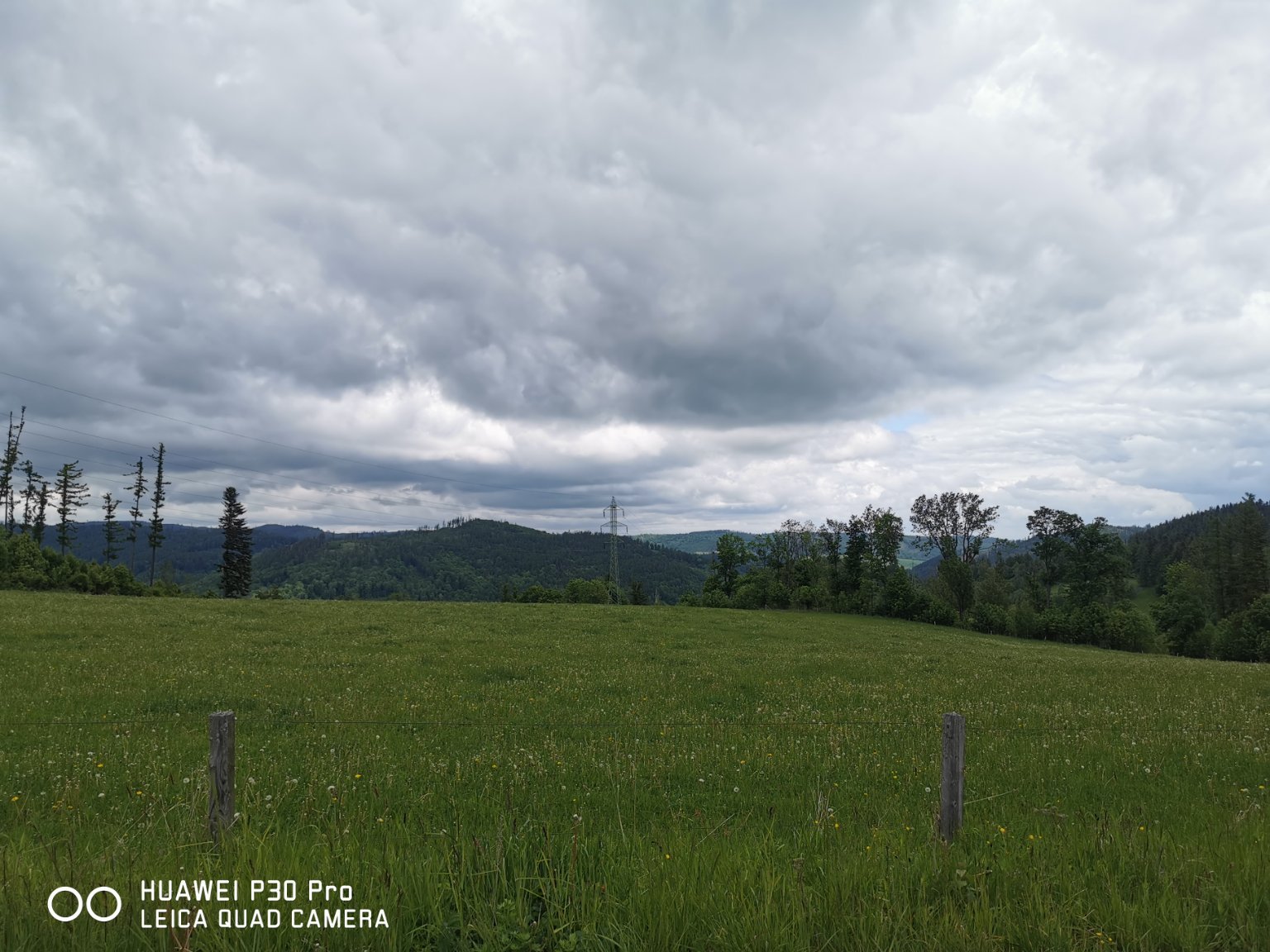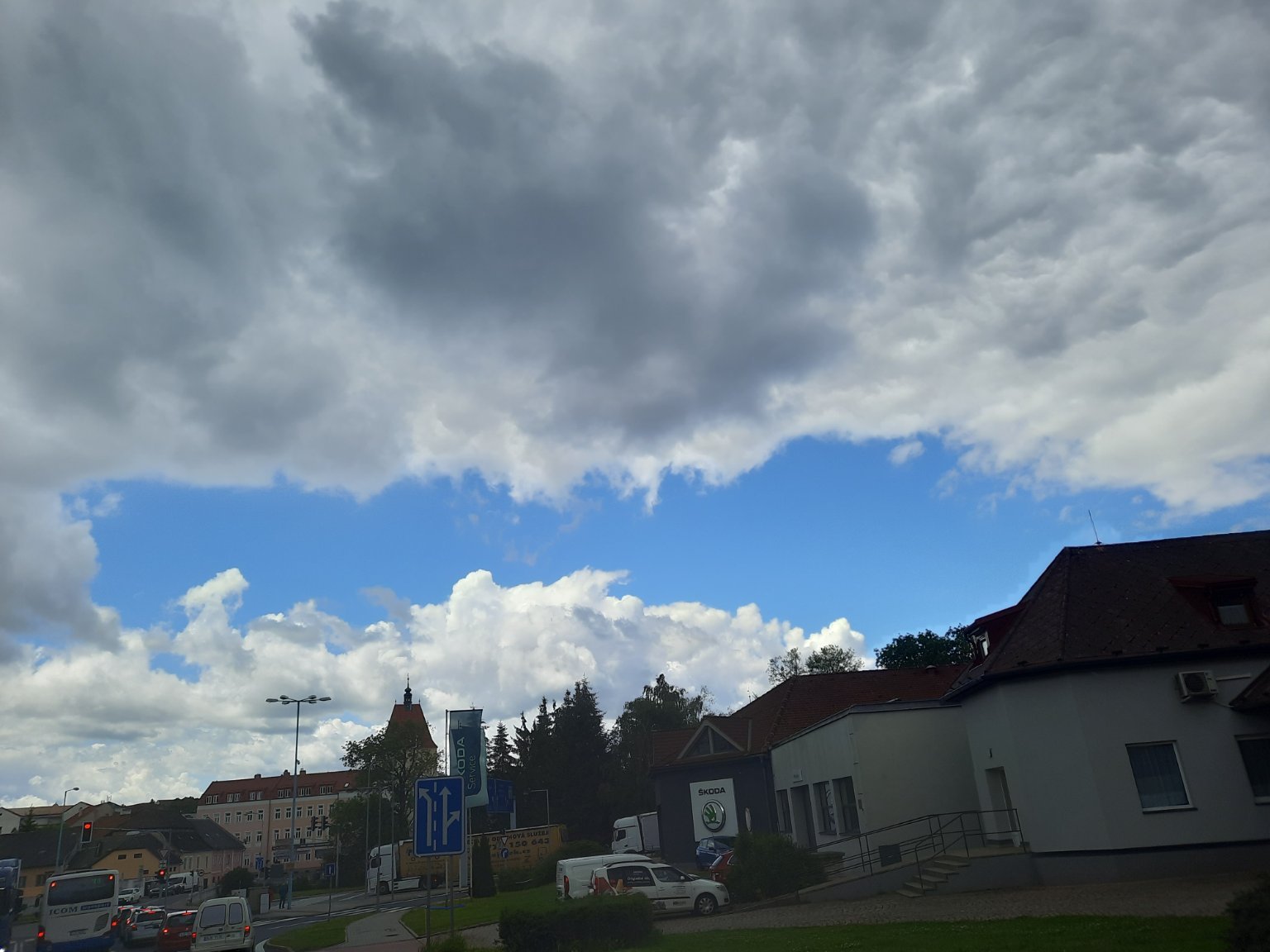 13,7°C, Zataženo. Kousek odsud je přehaňka.
