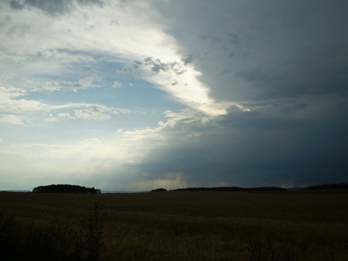 Je tu bouřka, tlak 1013,3 hPa.