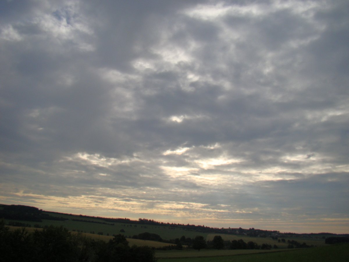 Oblačno až skoro zataženo,vlhkost 90%,vánek.Od západu se oblačnost začíná protrhávat