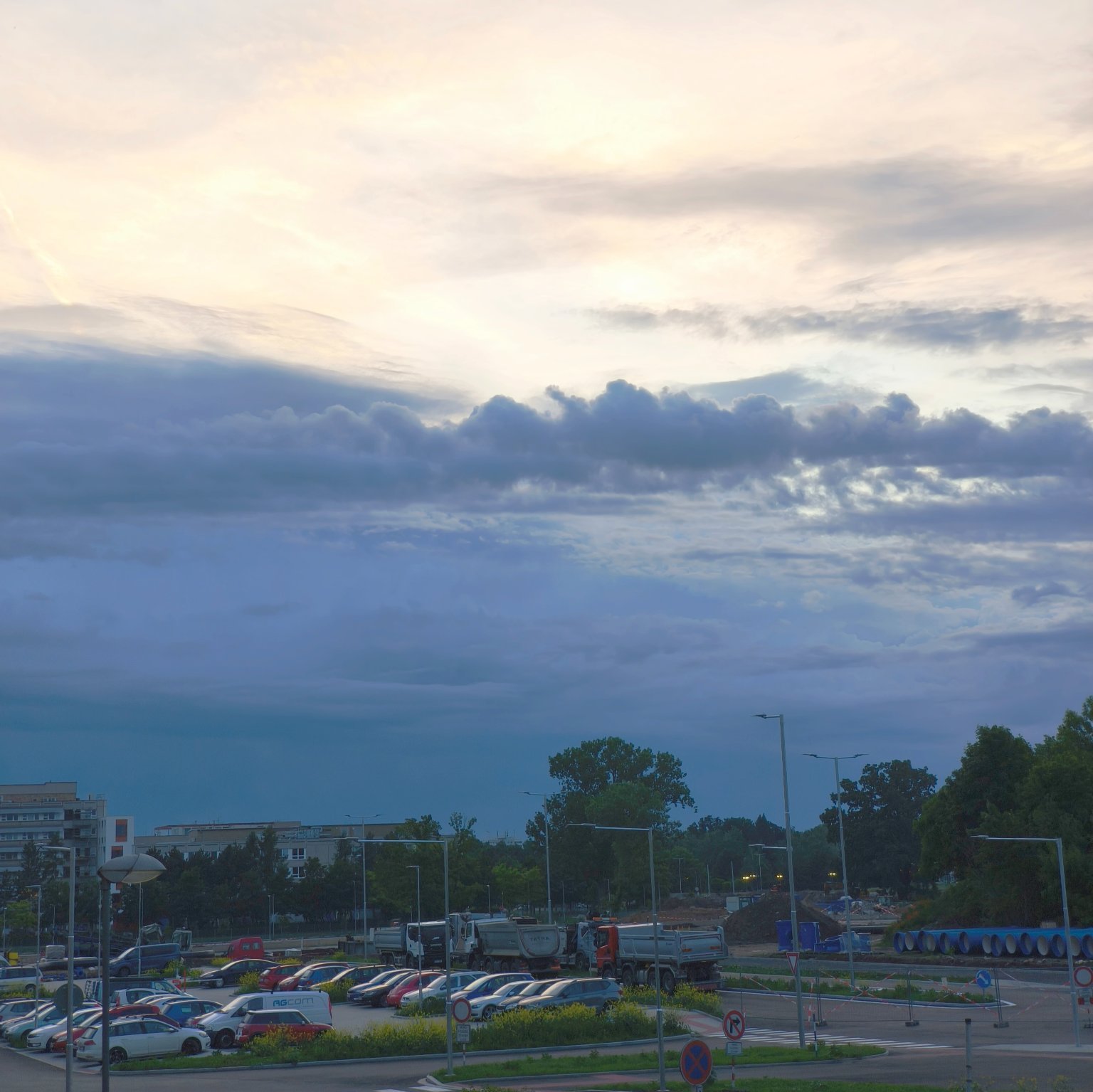 Viditelná bouřka u Kroměříže, vzdáleně se z ní blýská.