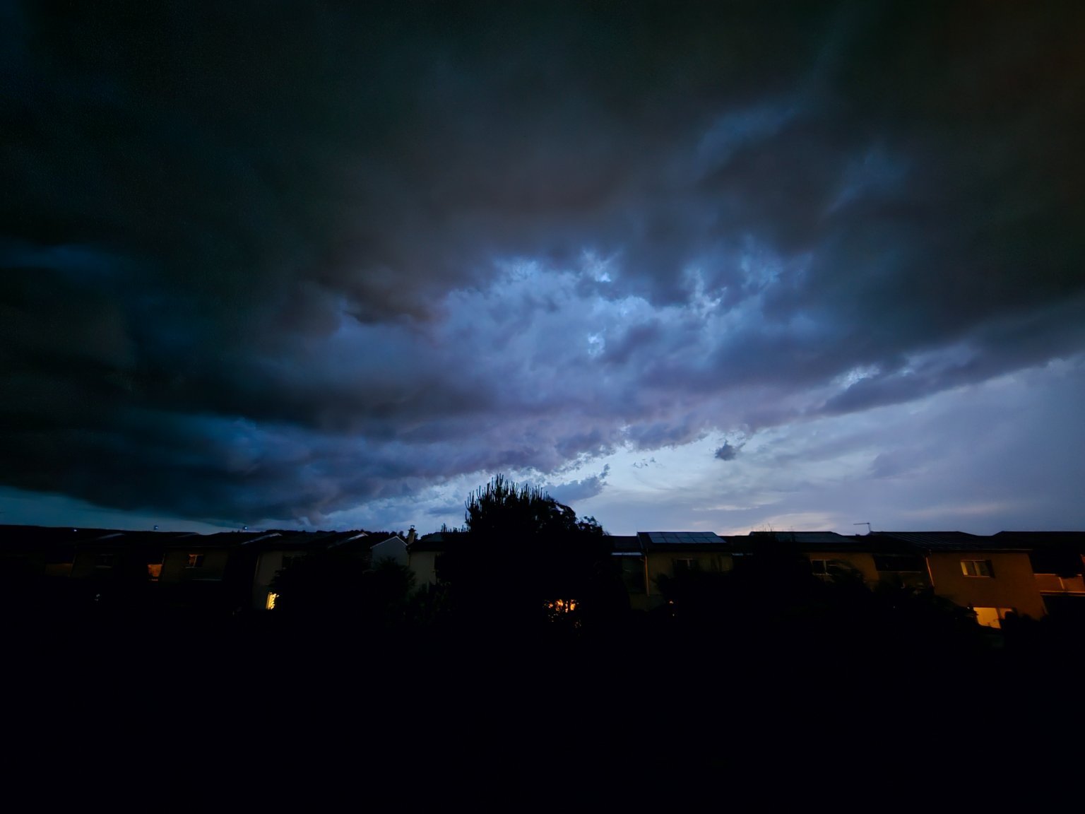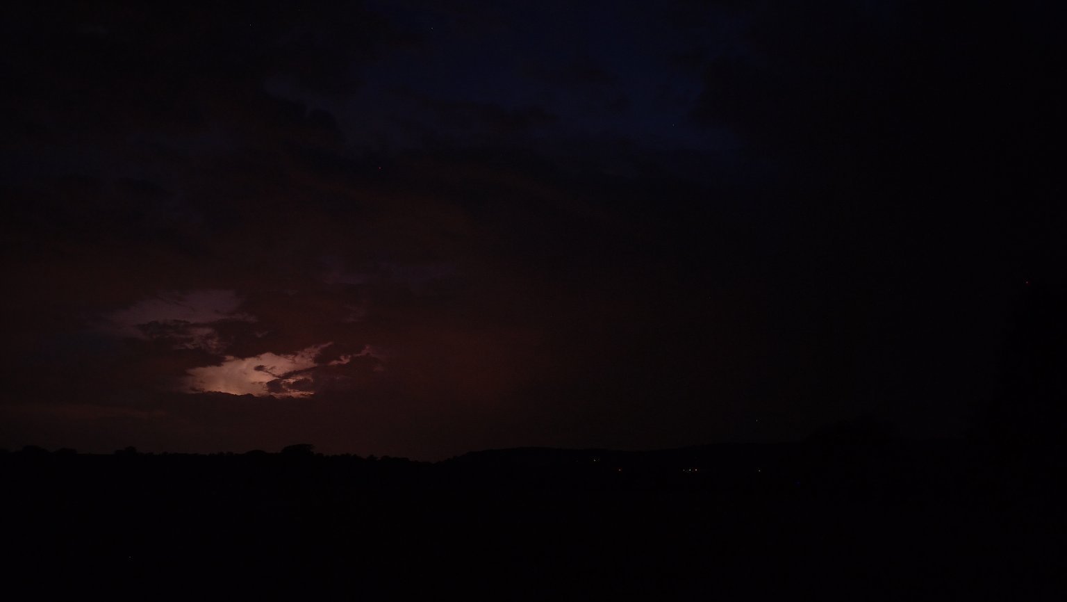 Blesk zachycený východně od nás na odcházející bouřce. Bouřka nás těsně obešla.