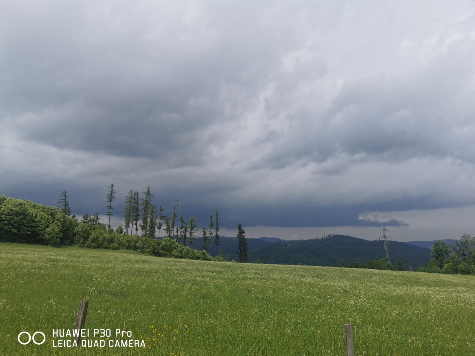 Polojasno, tvoří se kupovité mraky a černější mraky. U Litovle jsou nějaké přeháňky, ale zřejmě bez bouřek..