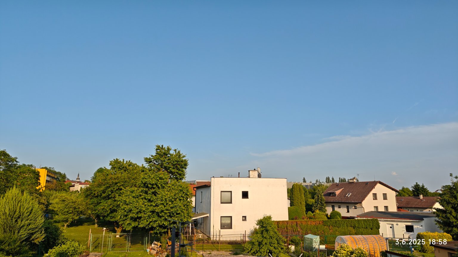 Je převážně slunečno - ubývání oblačnosti Cu, ale hodně SO a VO. Většinou slabý vítr od J, dnes ~0,2 mm srážek, teplo a dusno. Min. 10,4°C. Výborná dohlednost > 30km, hezky… Zítra dorazí masakr 🌩
