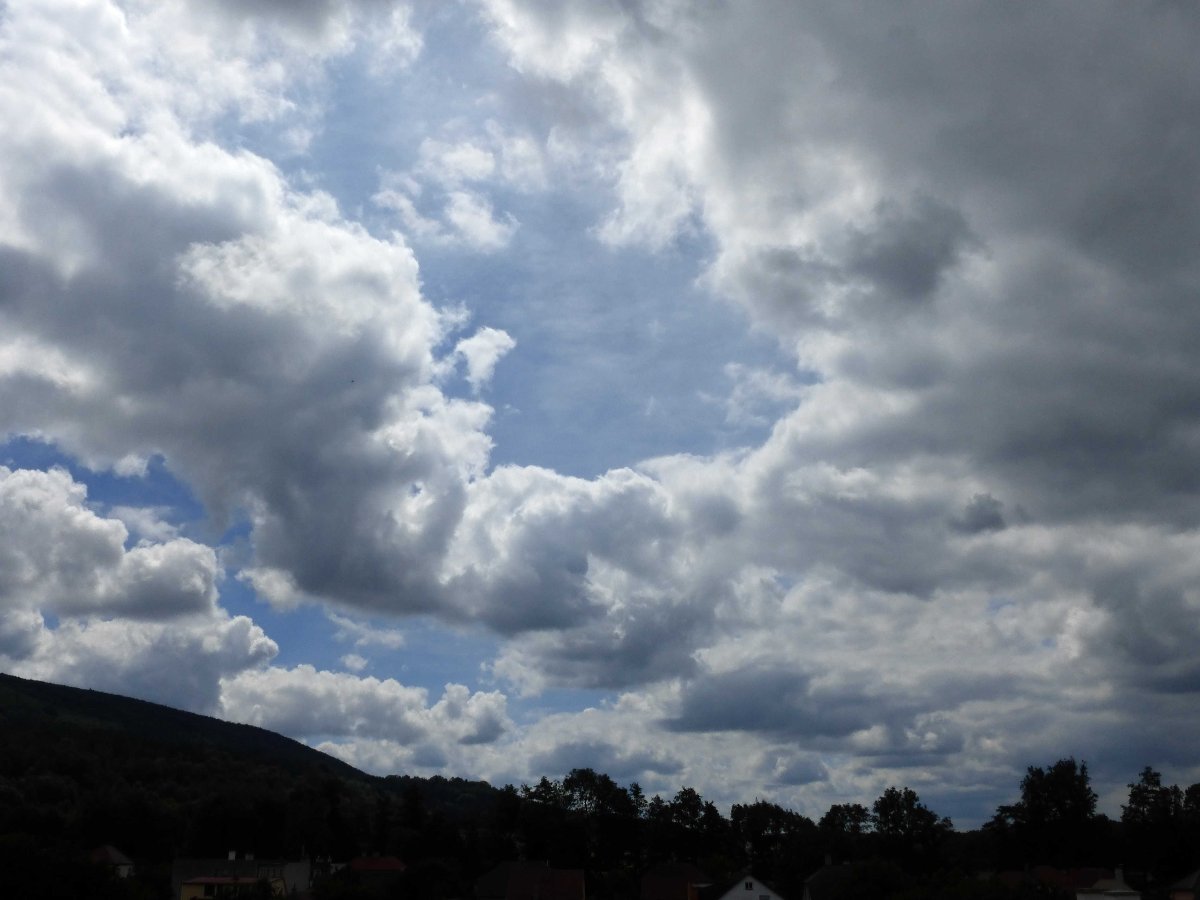 Skoro jasno, sem tam zafouká, dusno, tlak 1015,7 hPa a vlhkost 54 %.