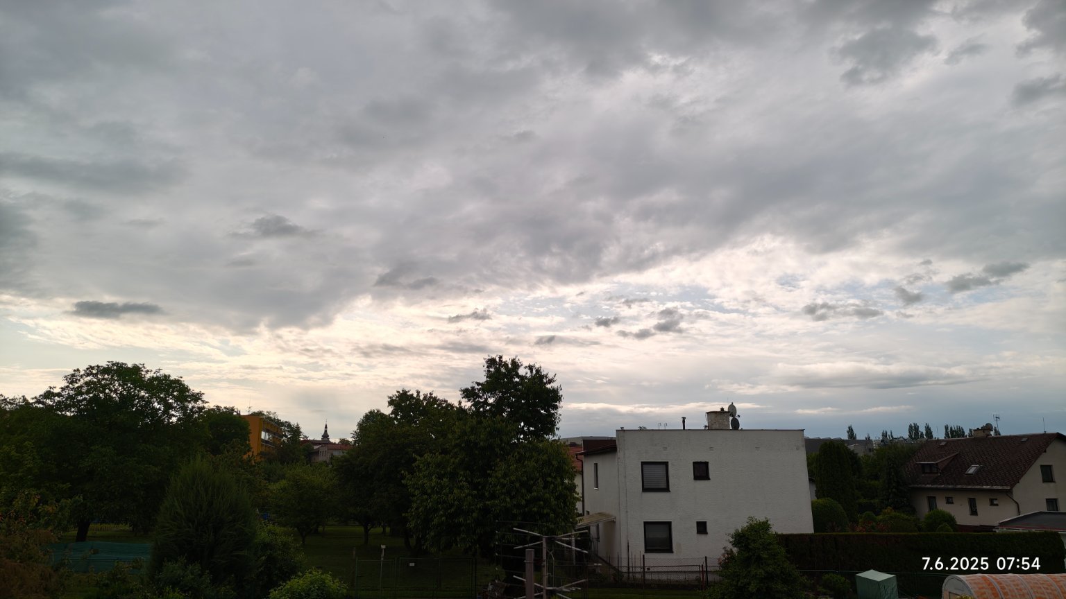 Skoro zataženo, vítr jen slabý jižních směrů, tlak 1014 hPa, vlhkost cca 75 %.