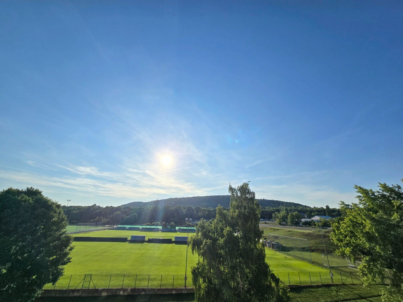 Jasno, hezky, obloha je hezky modro-tyrkysová. Příjemně fouká vítr, takže nakonec moc horko není.