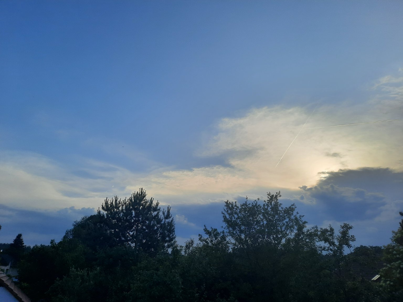 Přibývání vysoké frontální oblačnosti od Z. Velmi slabý vítr od JZ. Tlak 1015 hPa, vlhkost 43%.