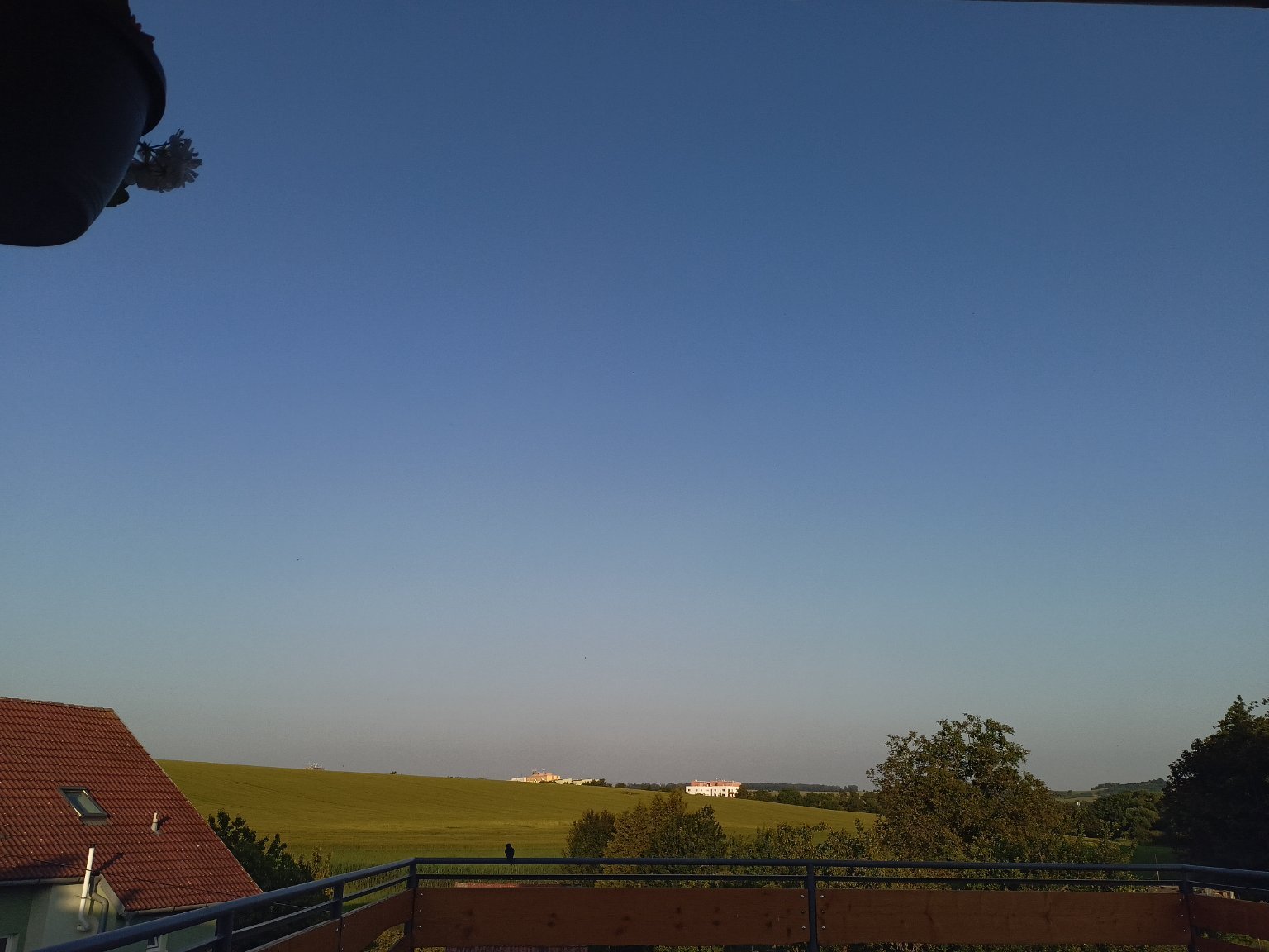23,7°C, Jasno až skoro jasno. Krásný letní večer, dneska najeto krásných 38 km a zítra jedu zas se školou do Lomné. :-) Dnešni maximum bylo 28,5°C.