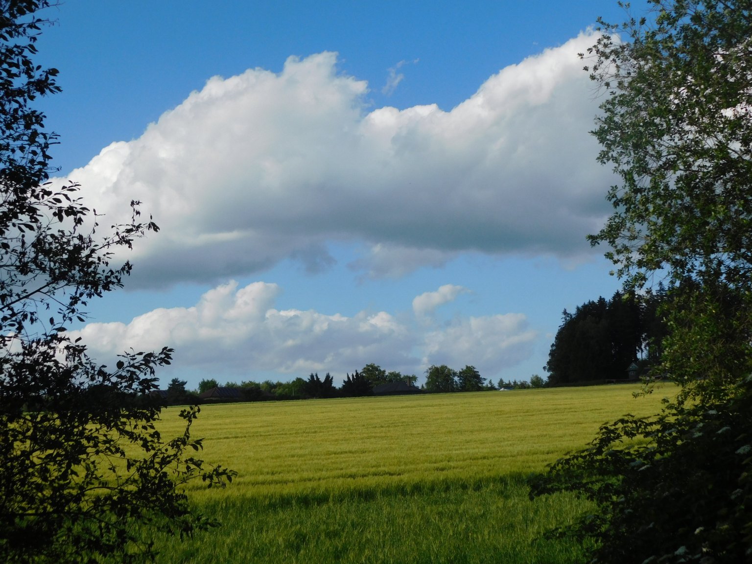 Od Z i trocha VO, některé obilí místy zlátne. Větrno od S