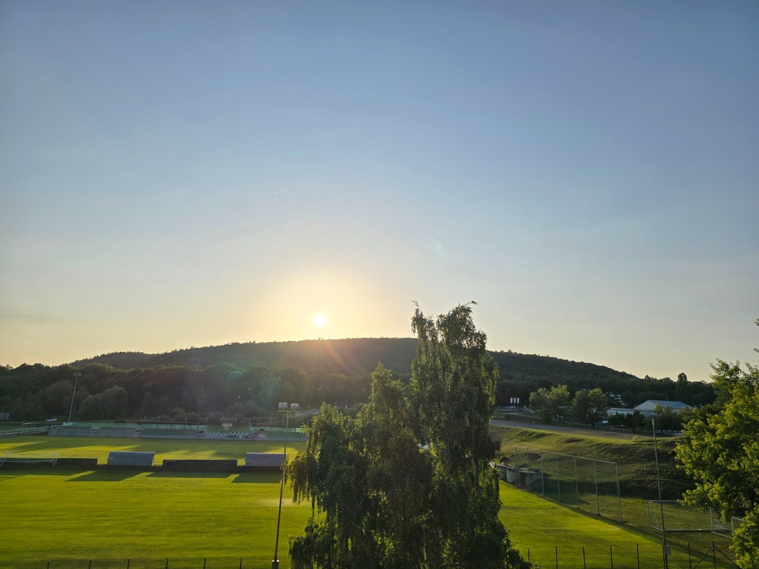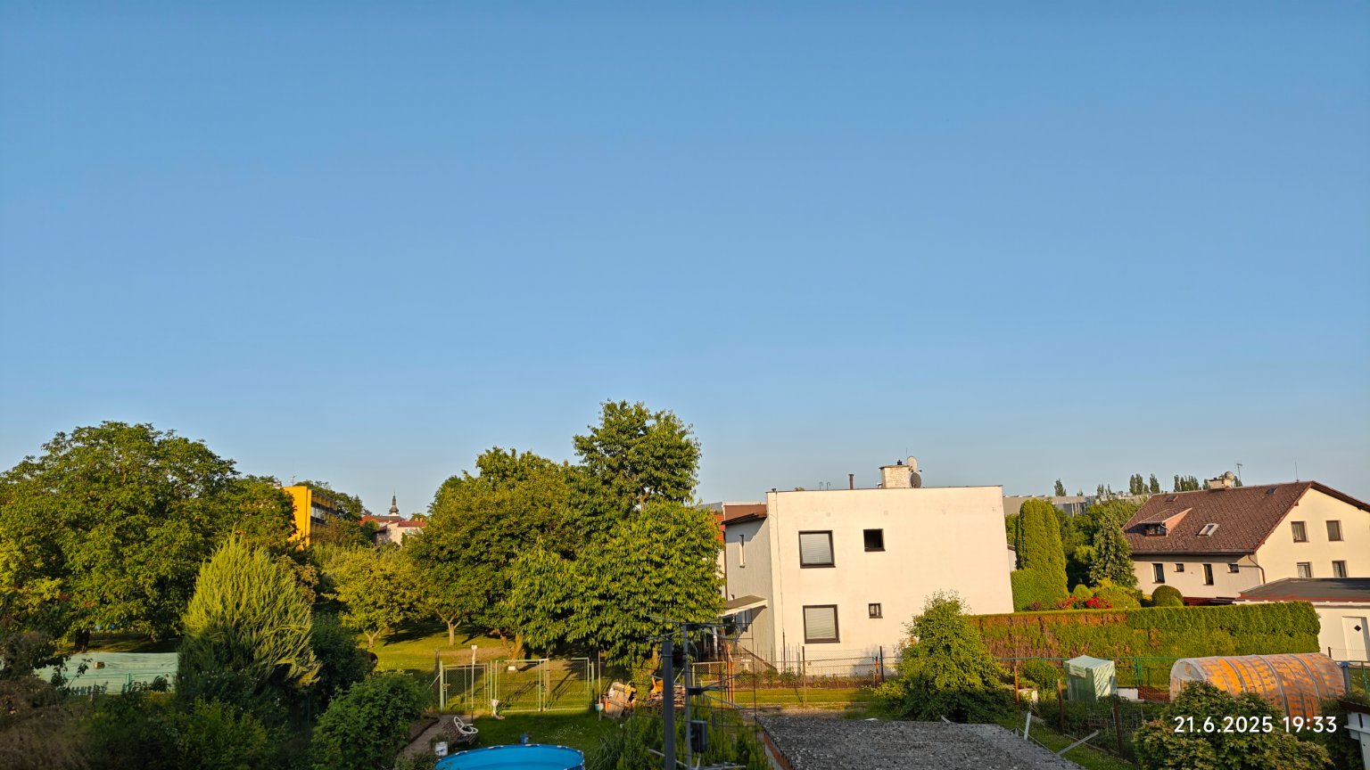 Jasno, slunce svítí, vánek. Pěkná obloha a klidno.