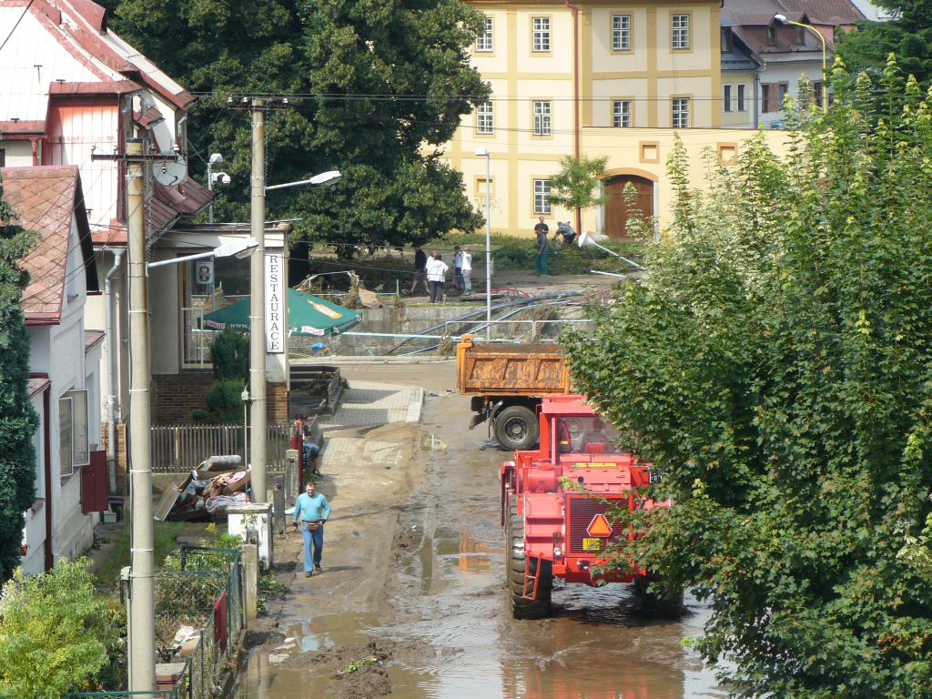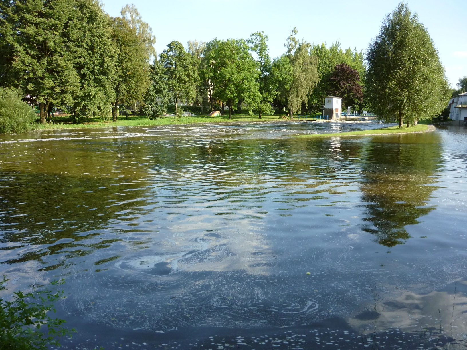 před hodinou spadlo pár kapek z rozpadající se slabé bouřky nad temelínem, na fotce rozvodněný Bechyňský potok ve Veselí