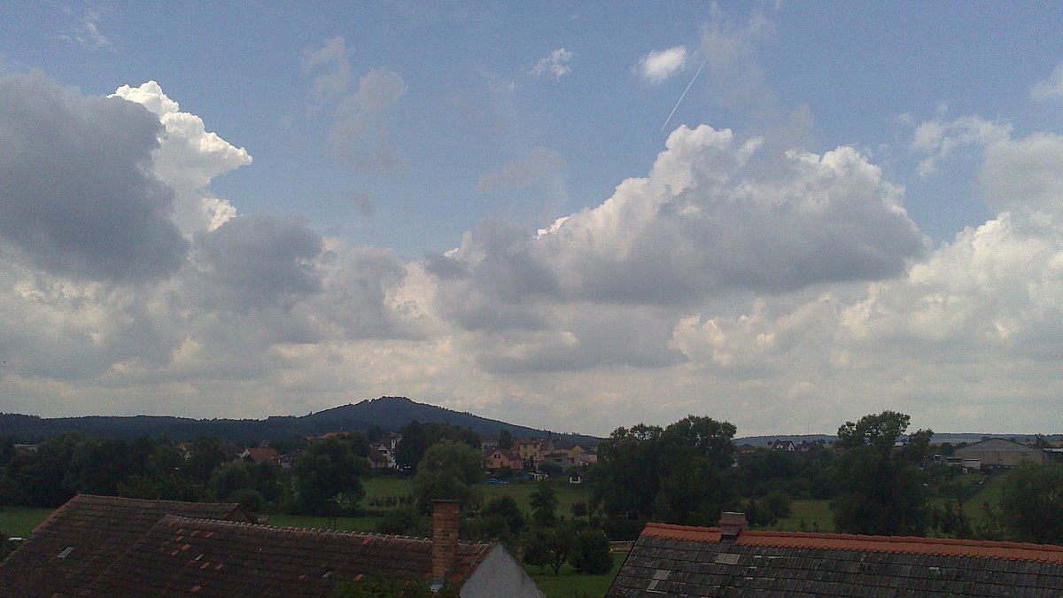 Slunce místy svítí, ale jinak je pořád schované.Fouká vítr něco sem dožene.