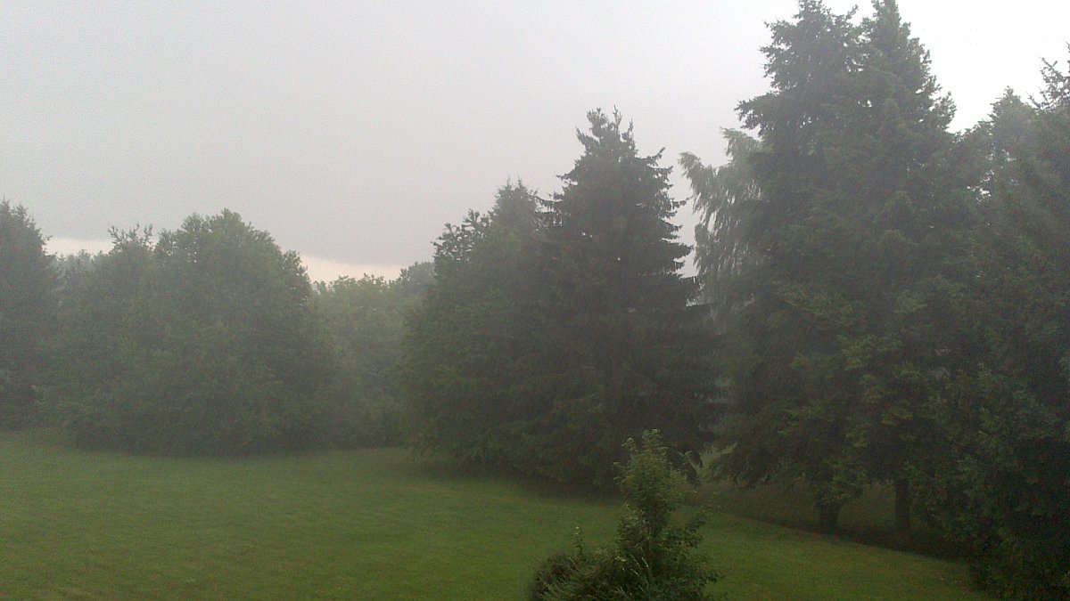 Dopoledne Polojasno až Oblačno,, Mírný vítr,, Aktuálně přes nás prochází slabší bouřka s vydatným deštěm který trval tak 3min teď prší slabě /Foto ve 12:40 až 14:20h