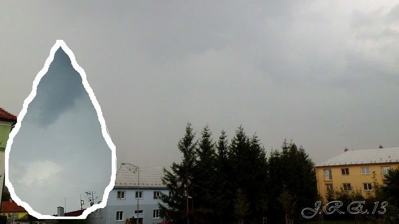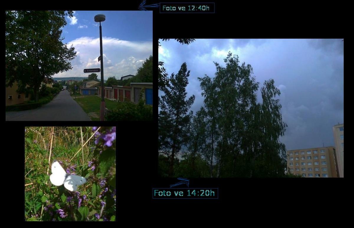 7/8 vysoká a střední oblačnost, tlak 1014hPa, vítr JV 2m/s
