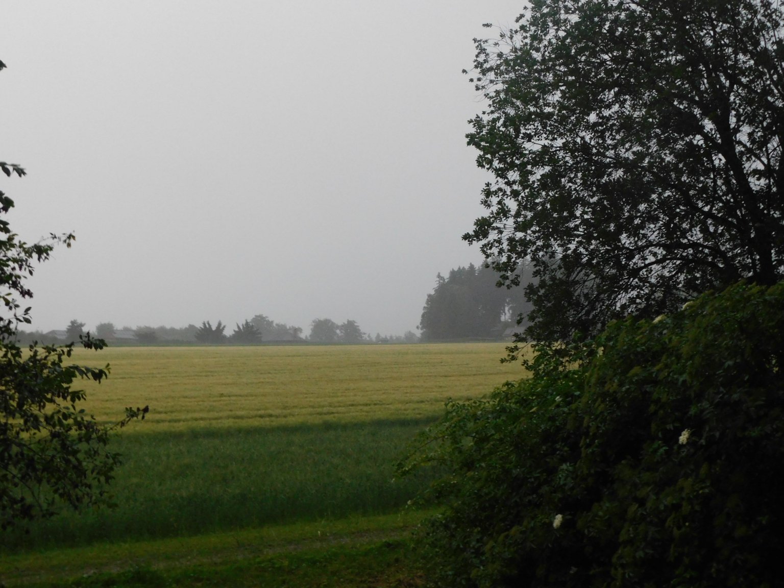 Zataženo, ještě je celkem teplo. Vzdálený shelf cloud. Bouřky to nevzdávají.
