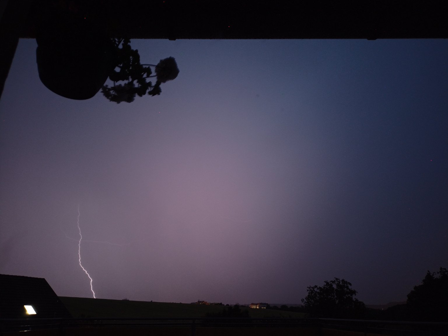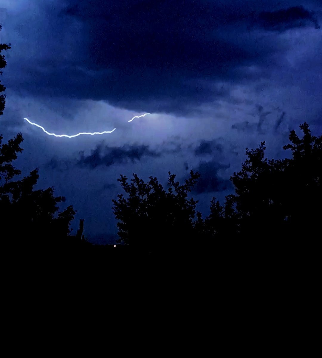 Rozpadající Shelf cloud obchází, kape a hřmí. Mírný až čerstvější vítr