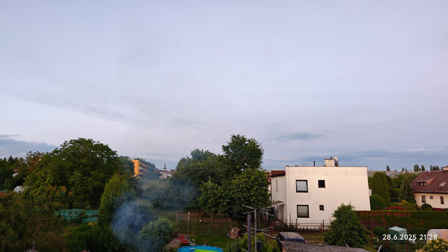 Oblačno, už je venku o něco lépe, protože nesvítí slunko a není tak horko. Vítr mírný až vánek. Přibylo oblačností.