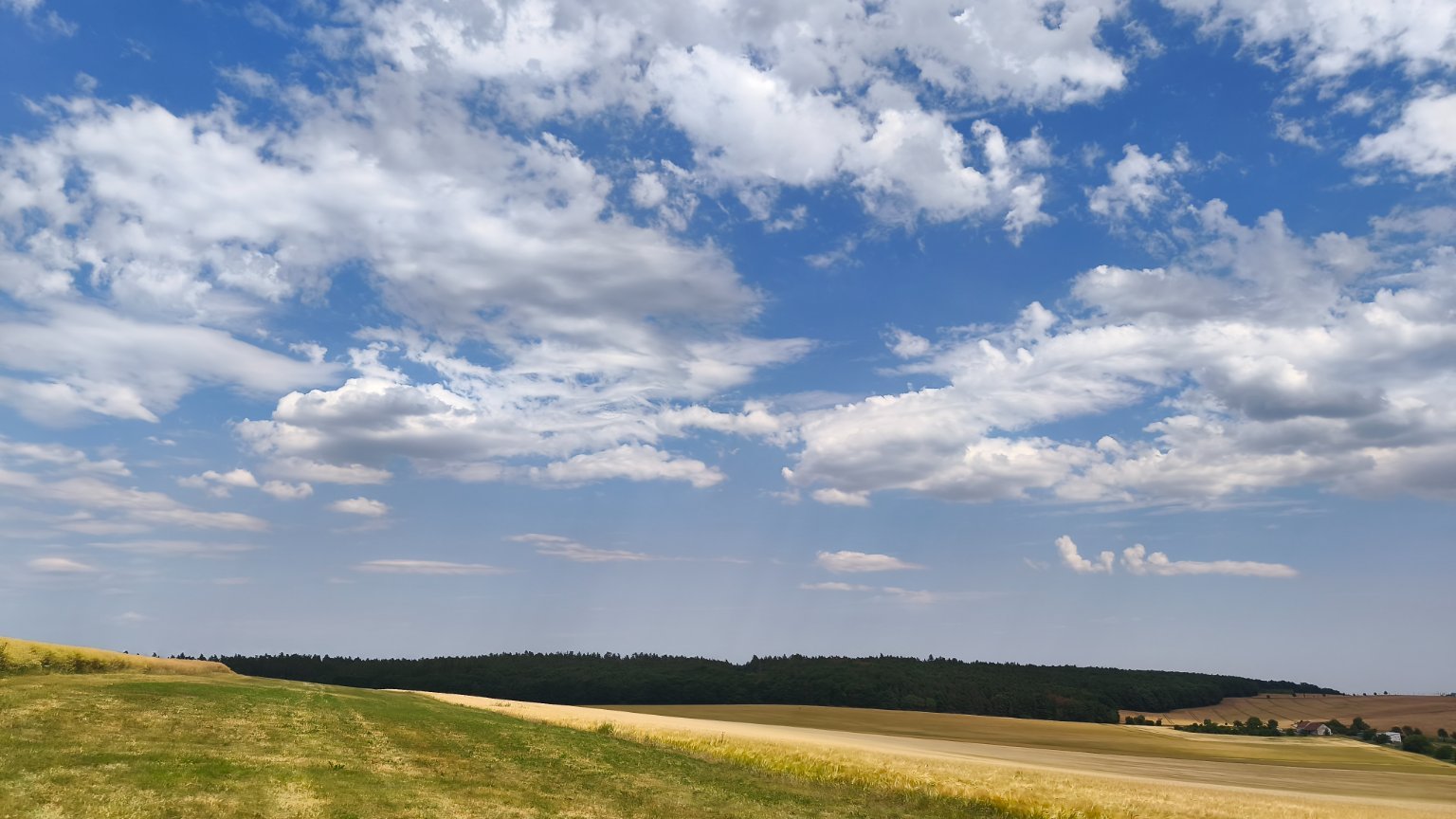 Polojasno až skoro jasno, začíná se oteplovat, jakmile ubylo oblaků. Je strašné dusno a fouka slabý až mírný vítr. V Mlýnském potoku je málo vody..