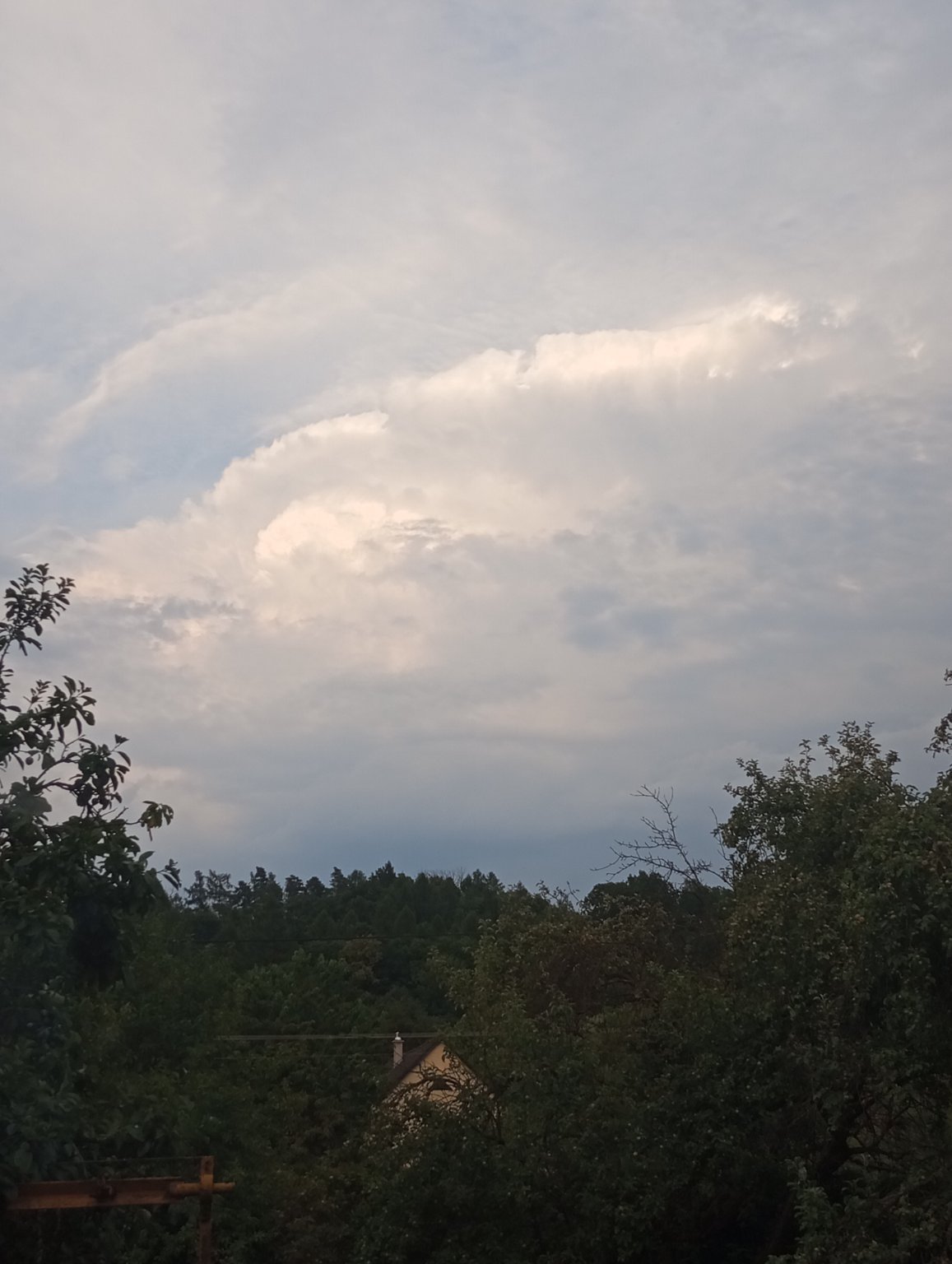 Oblačno a v dálce konvektivní buňka. Většinou bezvětří