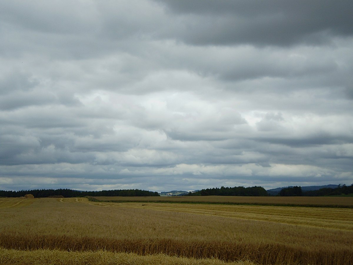 Je teplo, obloha se protrhala. Severní strana je pořád zakaboněná. Tlak 1009 hPa, vítr V, 0,8 m/s.